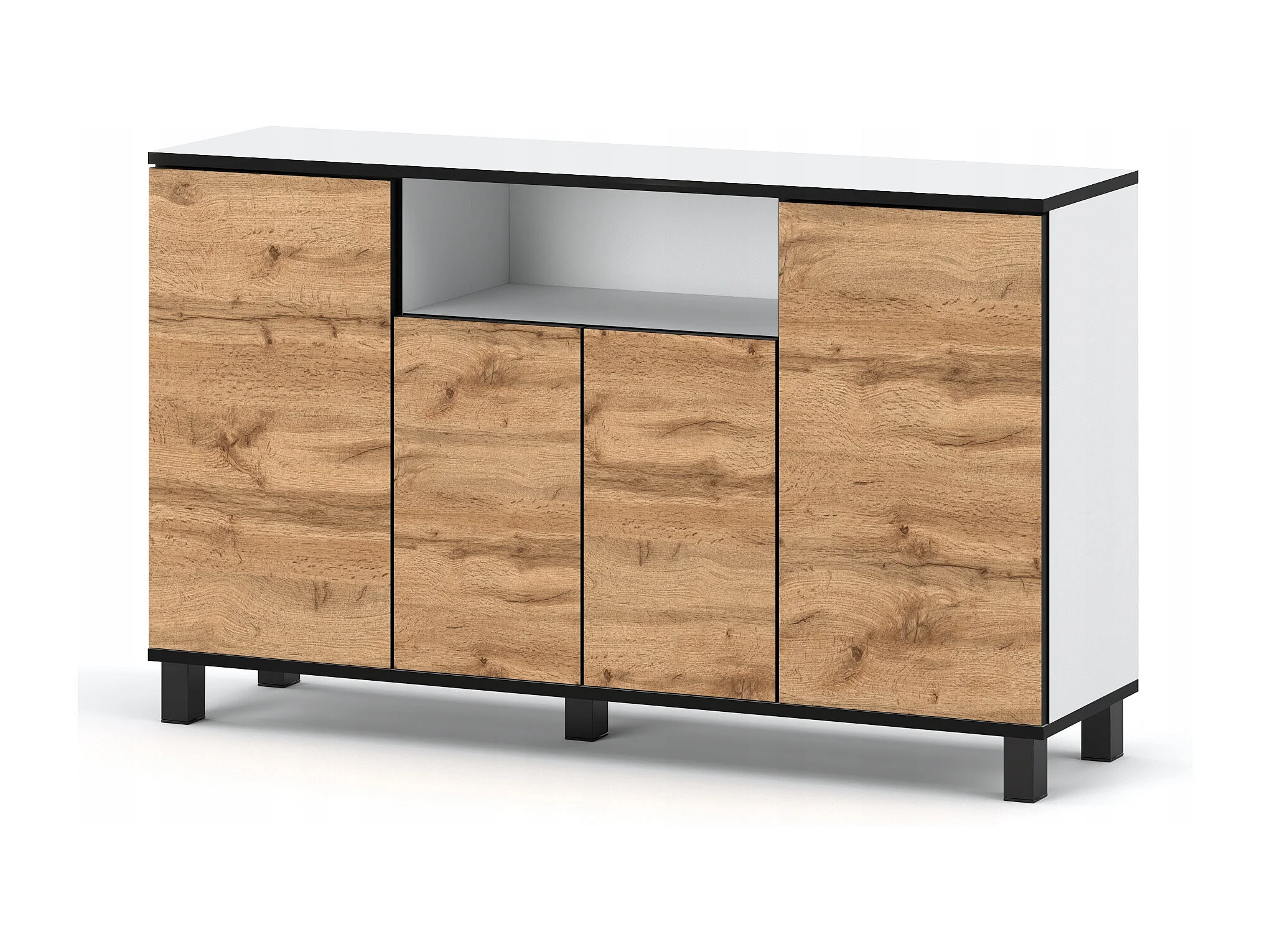 Duża Komoda 140 CM Biały Mat Dąb Wotan Szafka Rtv Meble Do Salonu Sypialni