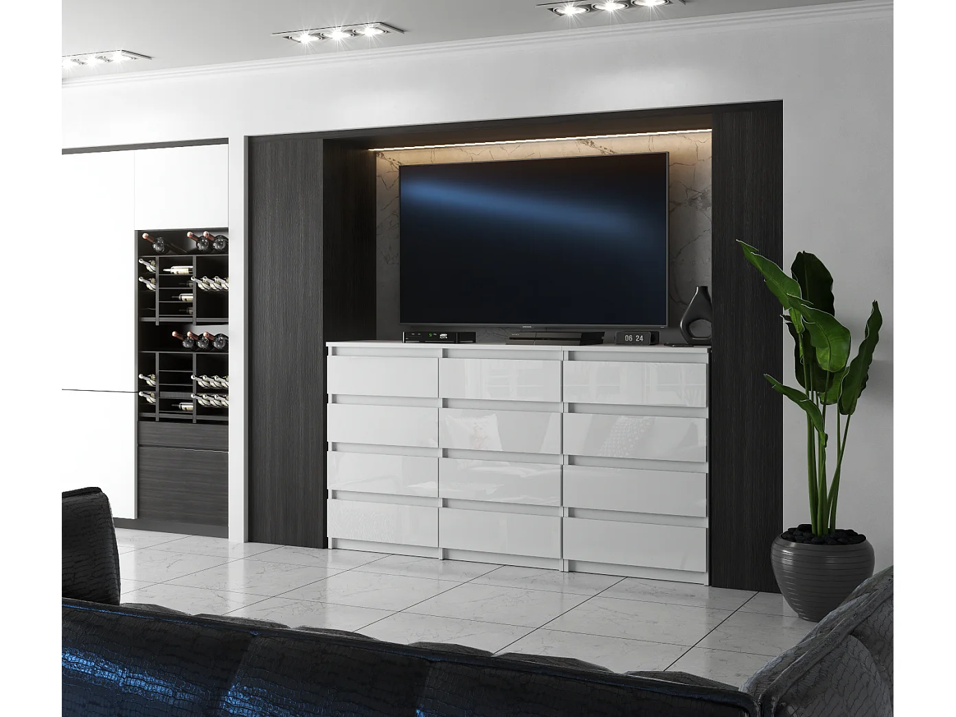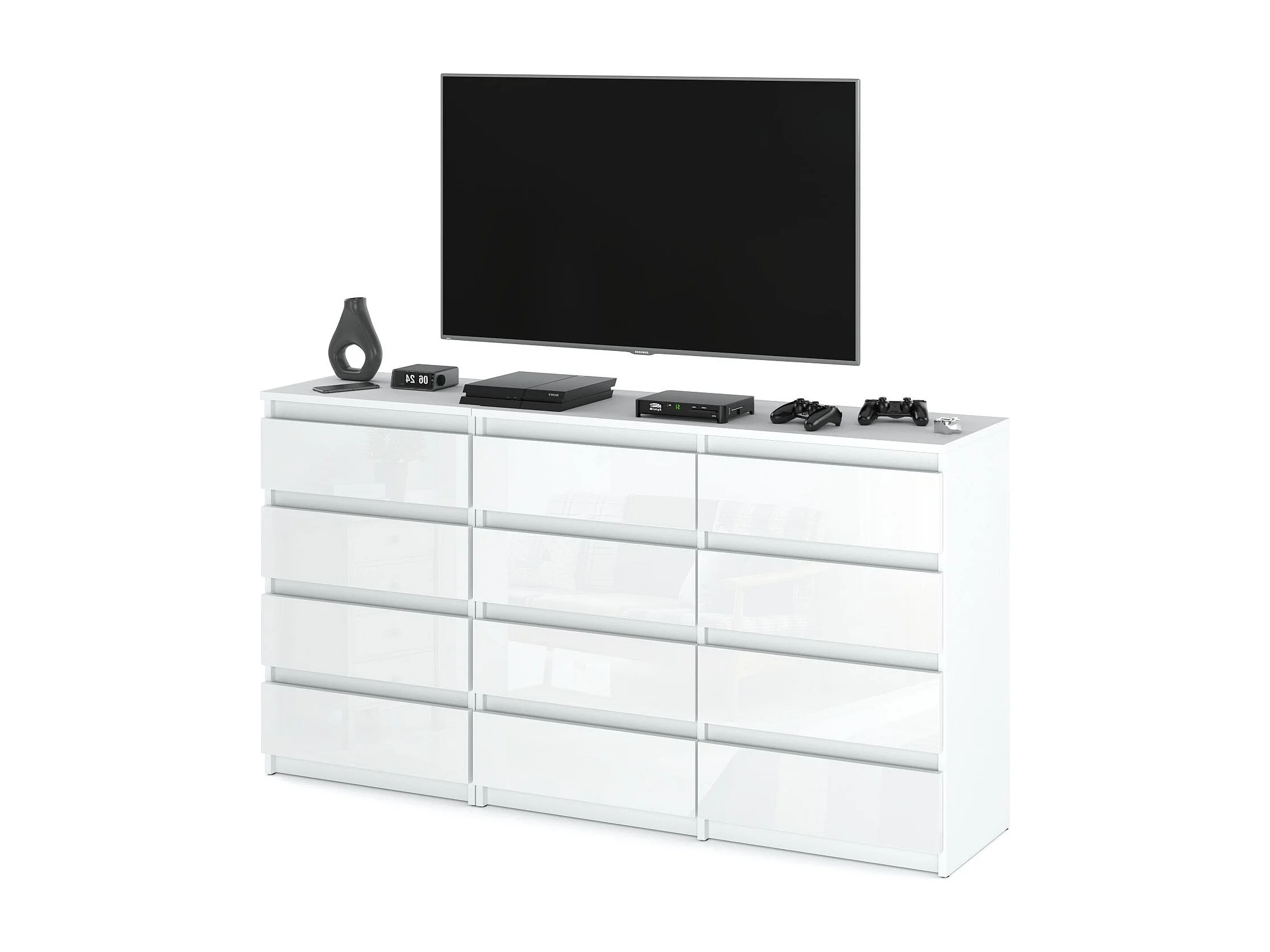Duża Komoda z 12 Szufladami 180 CM Szafka Rtv Biały Mat Biały Połysk Meble Do Salonu Sypialni
