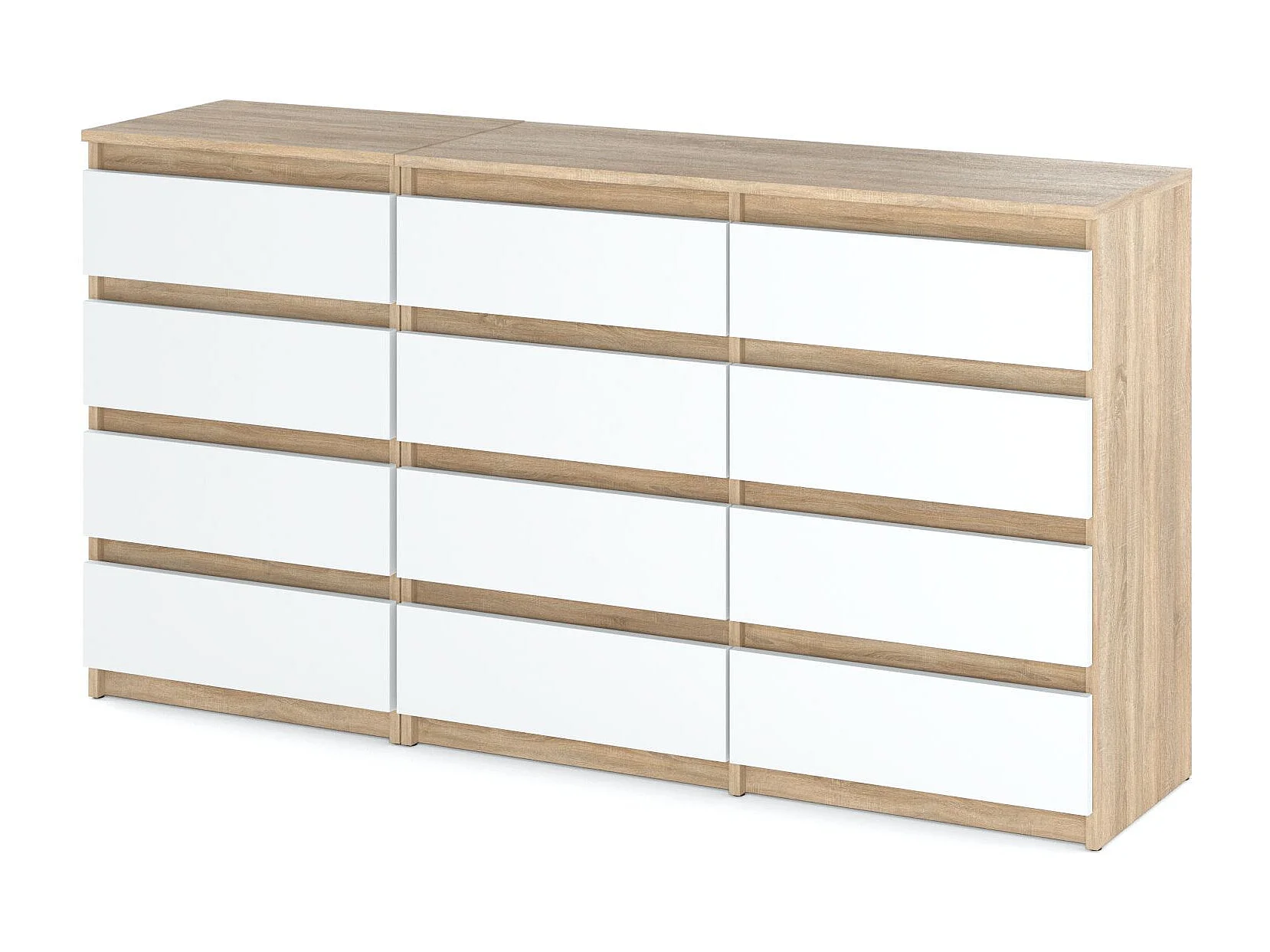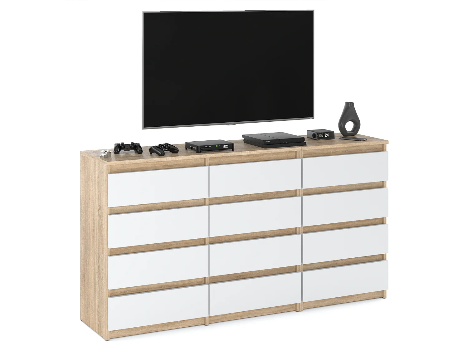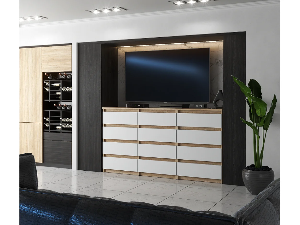 Duża Komoda z 12 Szufladami 180 CM Szafka Rtv Dąb Sonoma Biały Mat Meble Do Salonu Sypialni