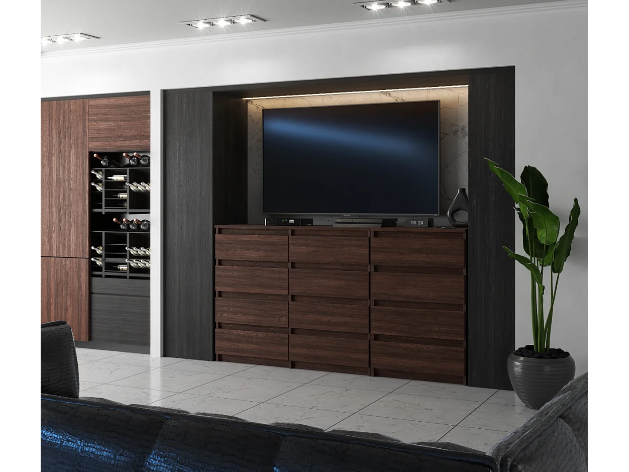 Duża Komoda z 12 Szufladami 180 CM Szafka Rtv Dąb Wenge Meble Do Salonu Sypialni
