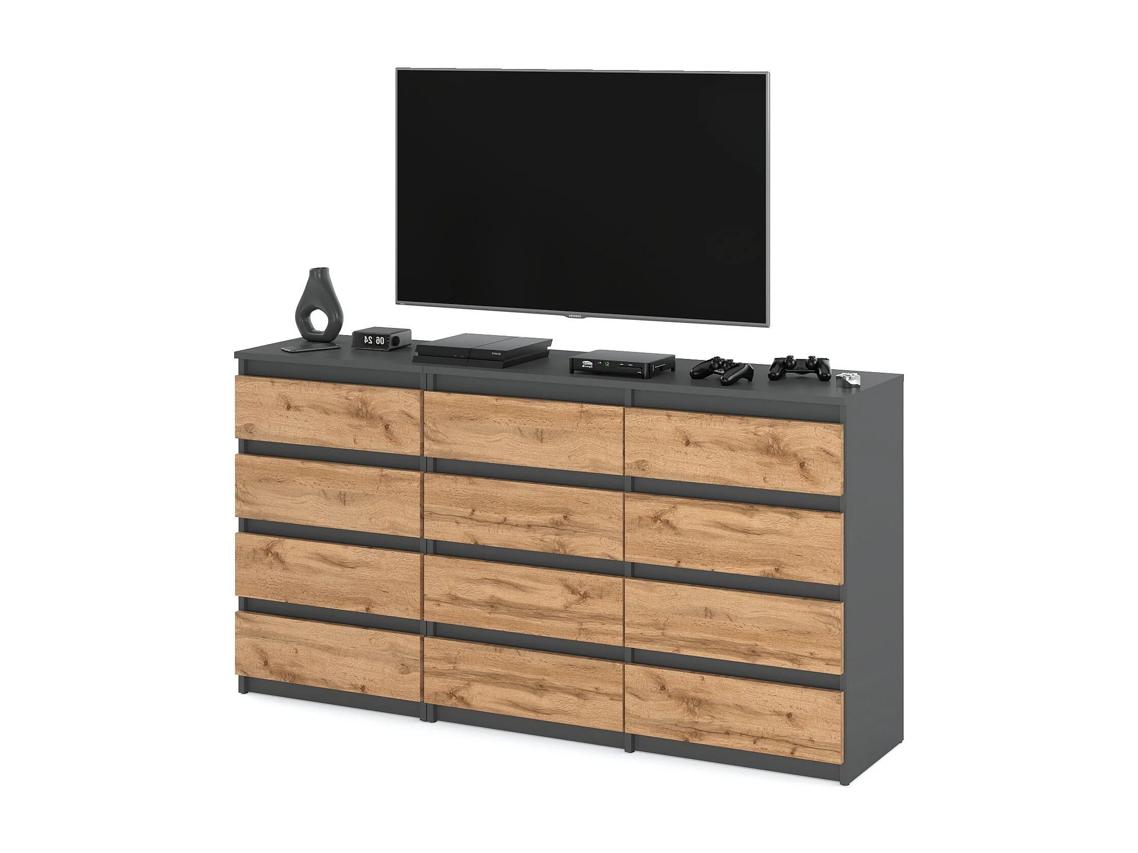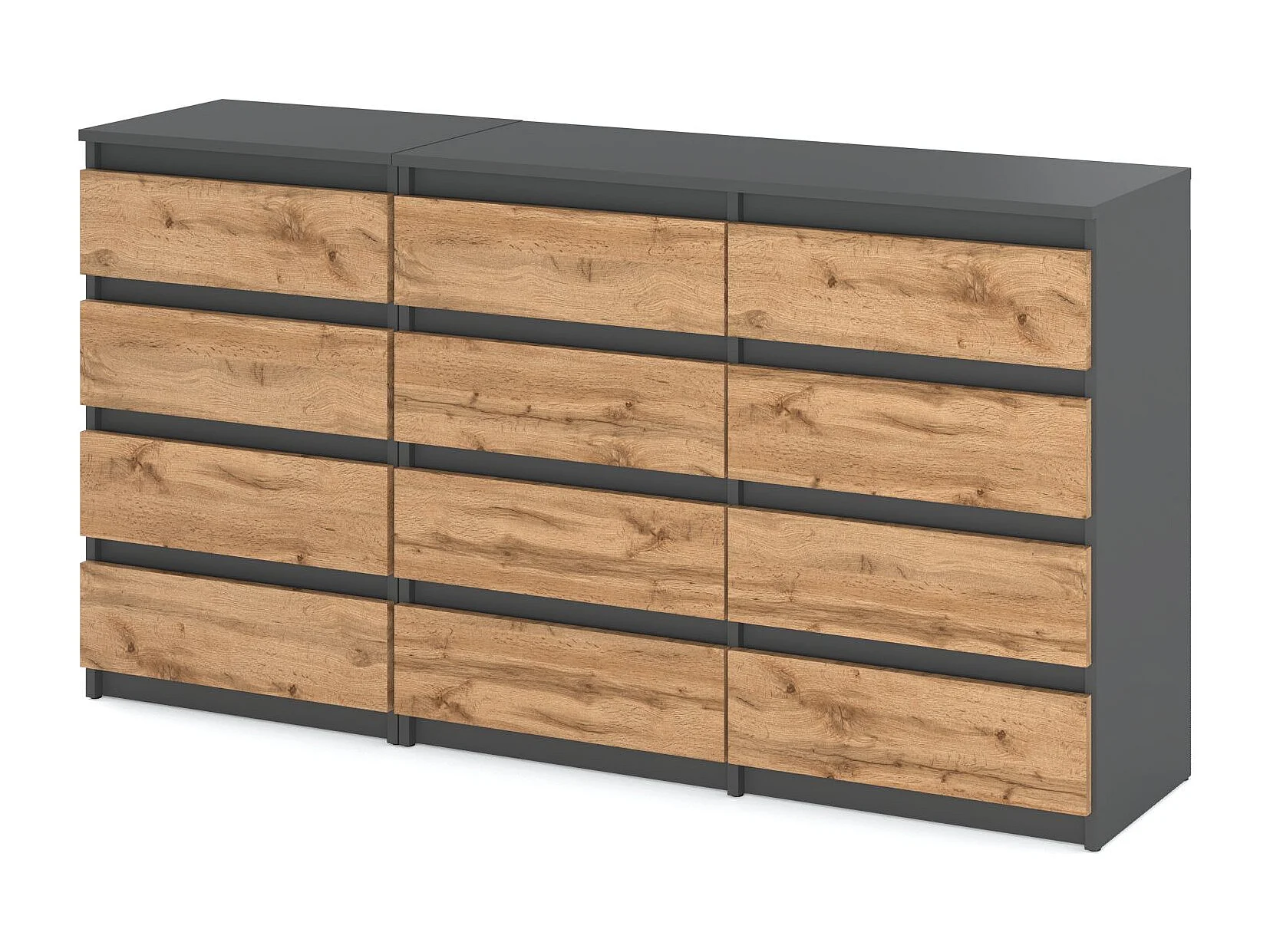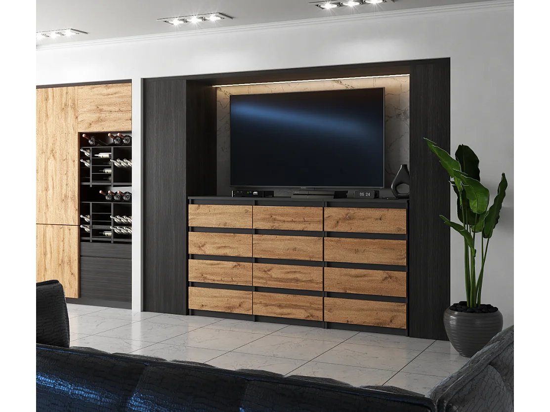 Duża Komoda z 12 Szufladami 180 CM Szafka Rtv Szary Mat Dąb Wotan Meble Do Salonu Sypialni