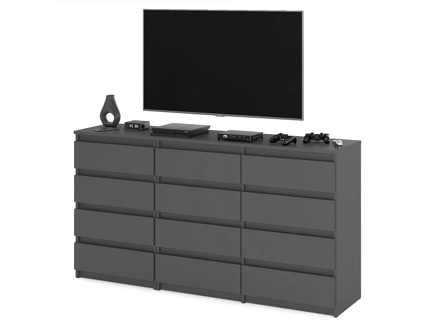 Duża Komoda z 12 Szufladami 180 CM Szafka Rtv Szary Mat Meble Do Salonu Sypialni