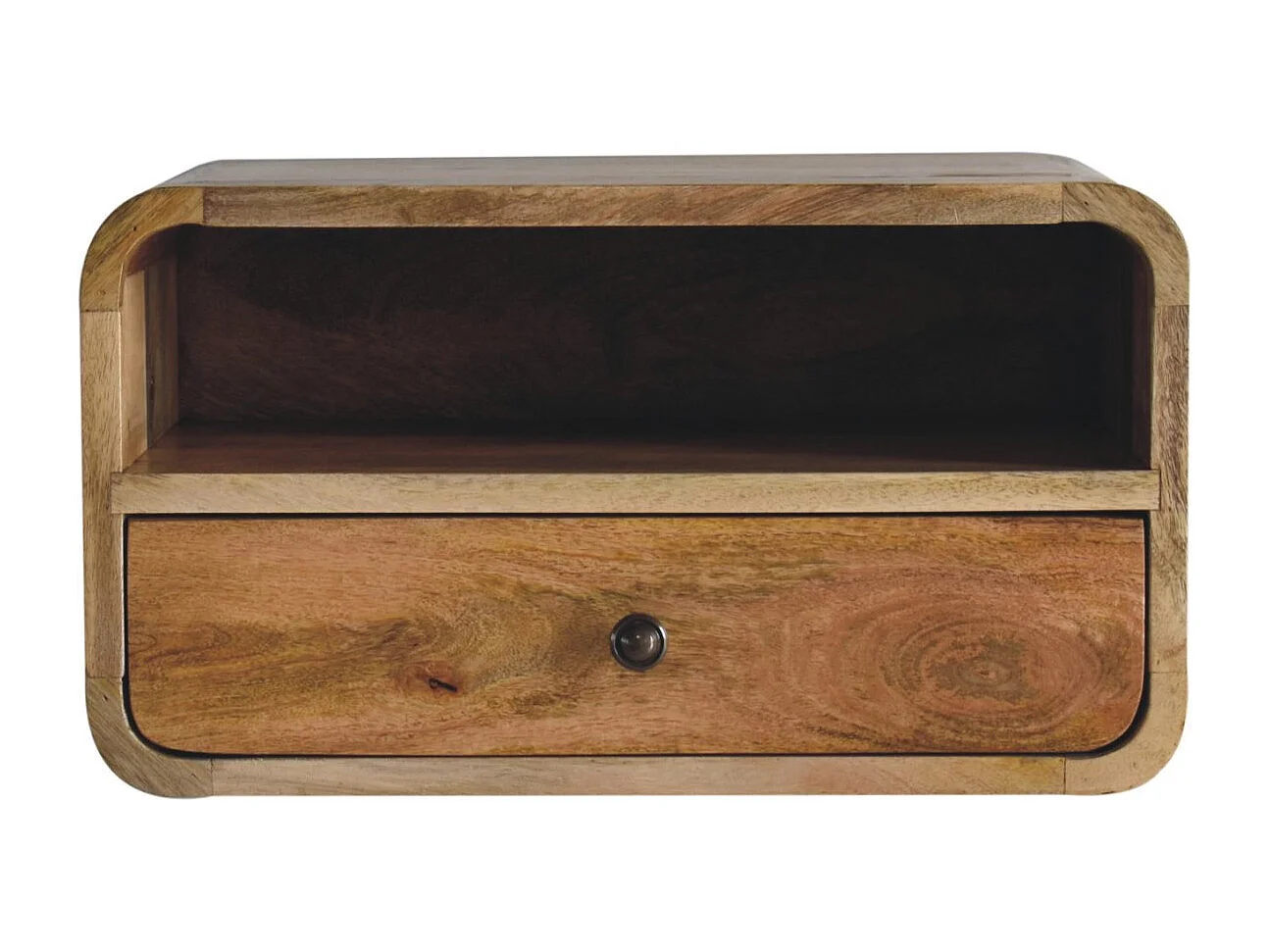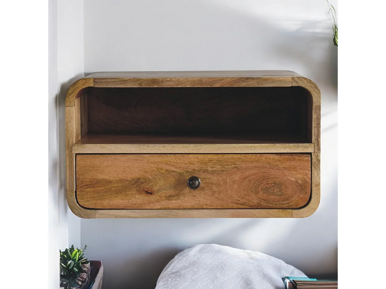 Artisan Furniture Szafka nocna Avora montowana na ścianie z 1 szufladą w kolorze miodowo-karmelowym z litego drewna