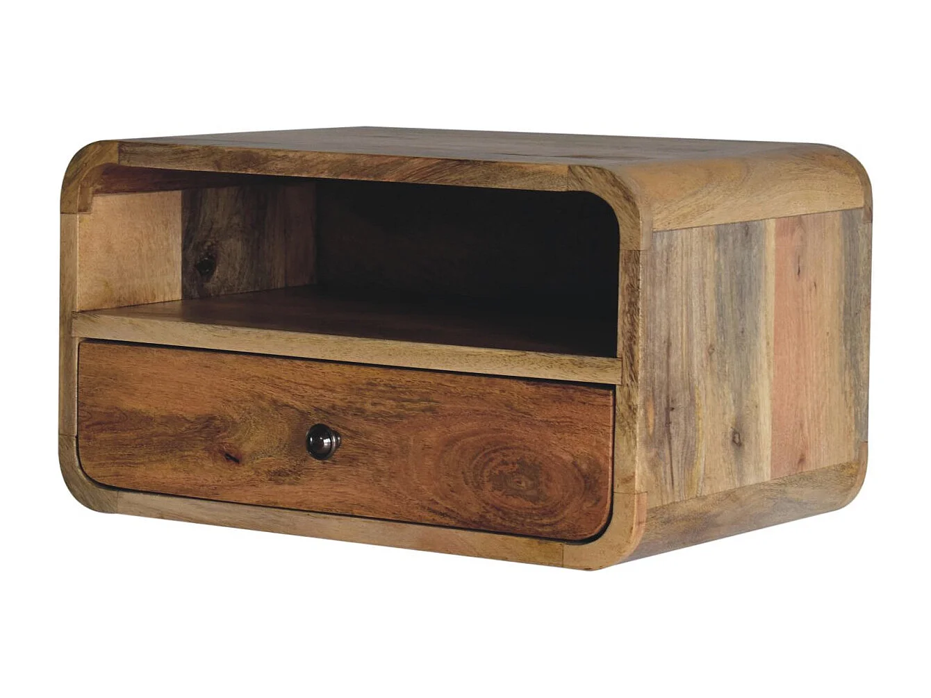 Artisan Furniture Orzechowa wisząca szafka nocna z zakrzywionym wzorem i otwartym slotem, sypialnia