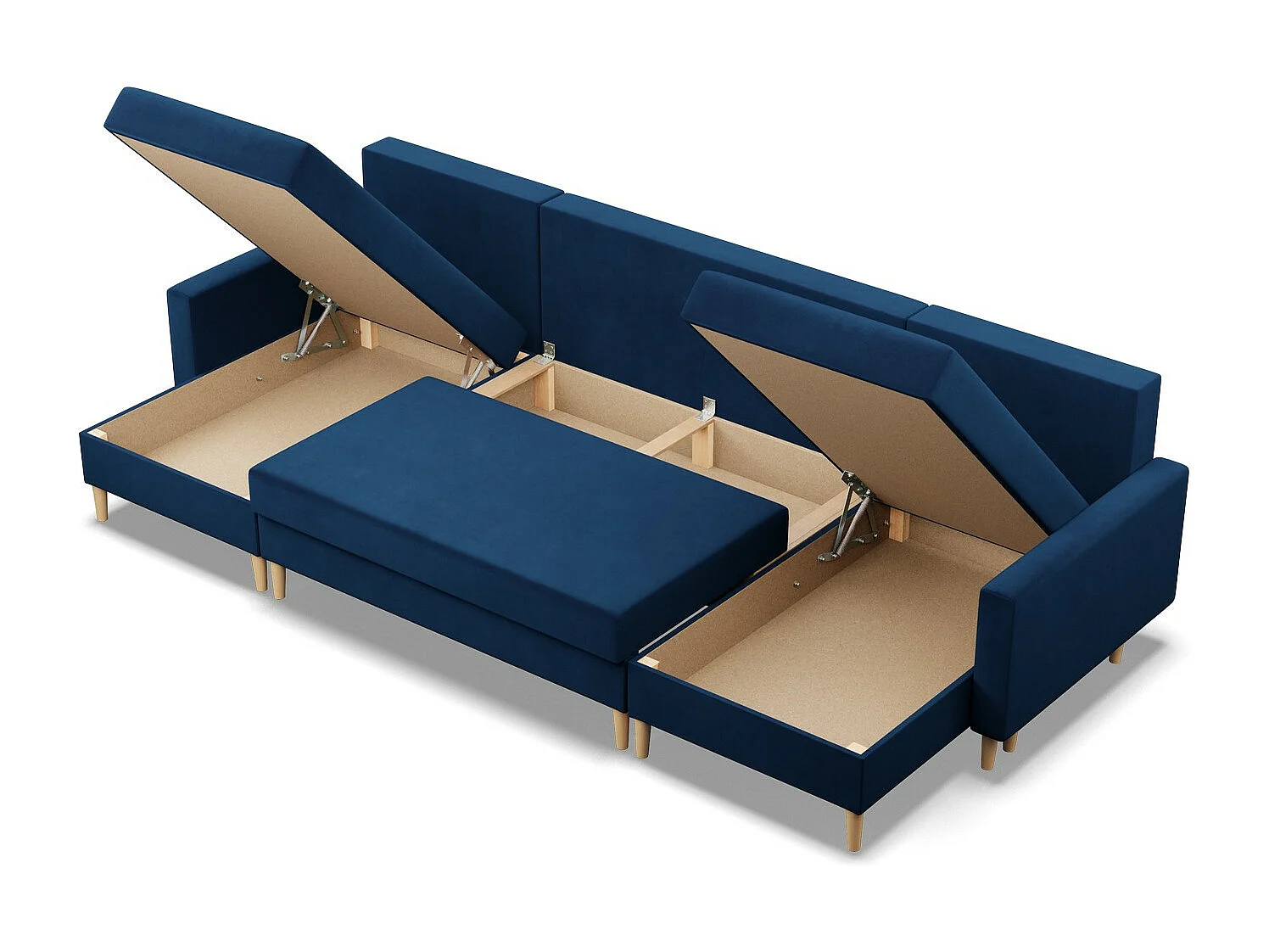 Duży narożnik w kształcie litery U z funkcją spania, z dwustronną poduszką, kolor ciemnoniebieski