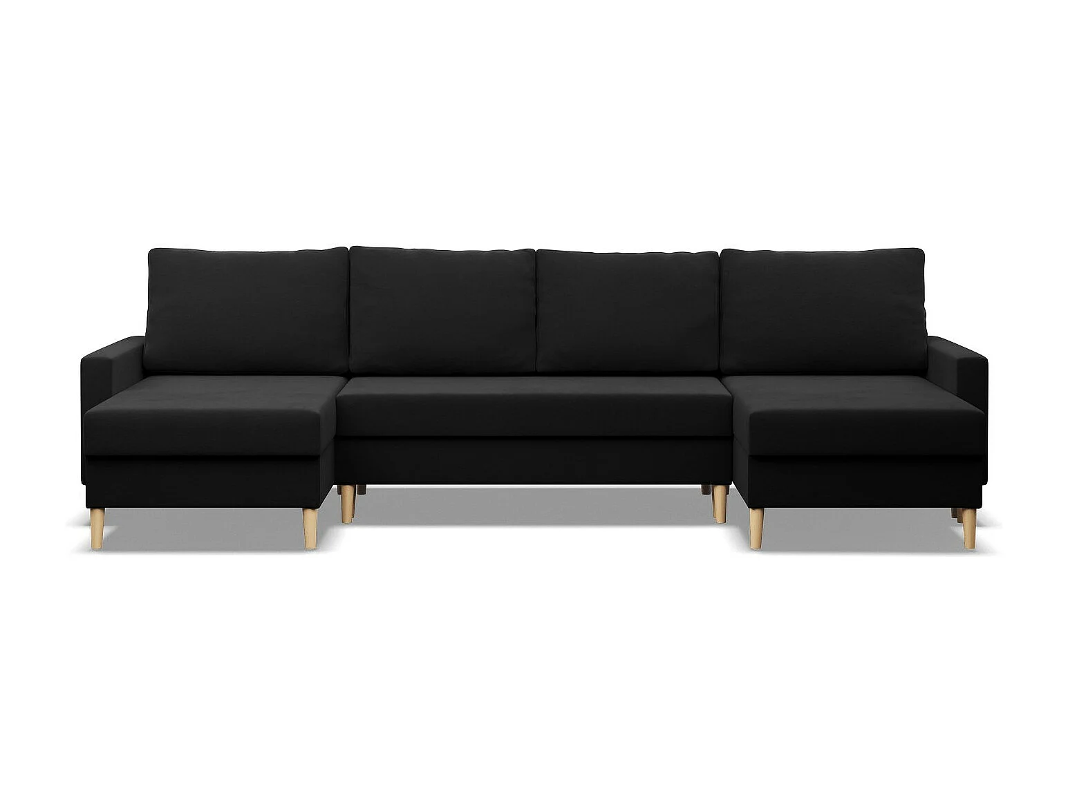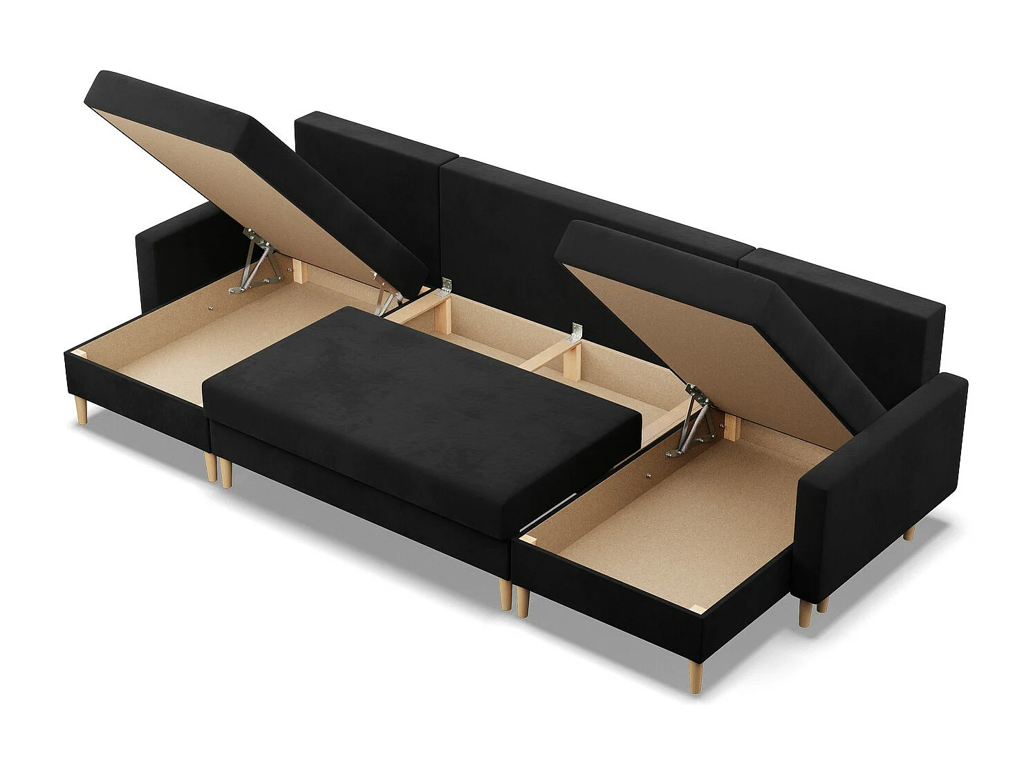 Duży narożnik w kształcie litery U z funkcją spania, z dwustronną poduszką, kolor czarny