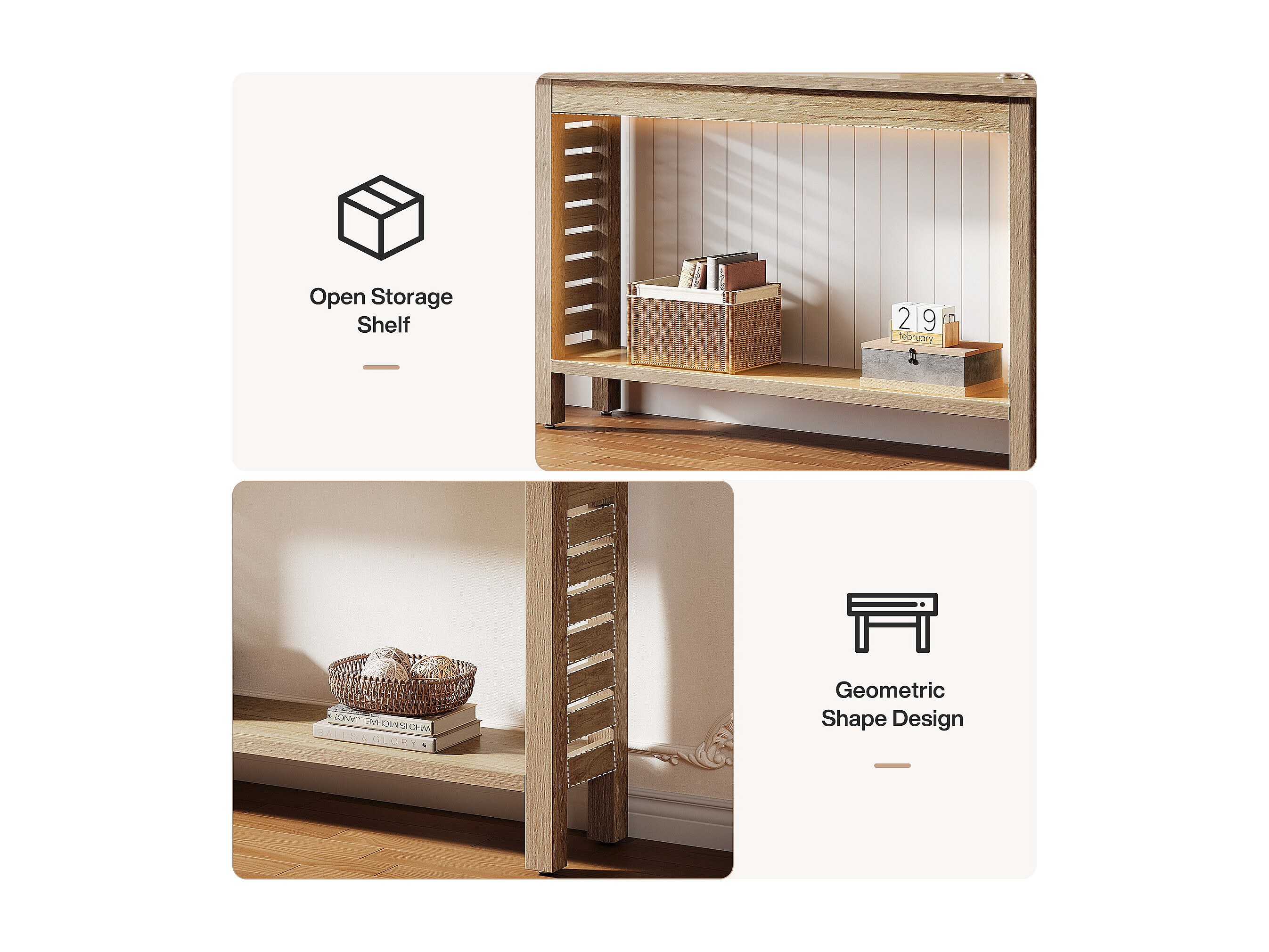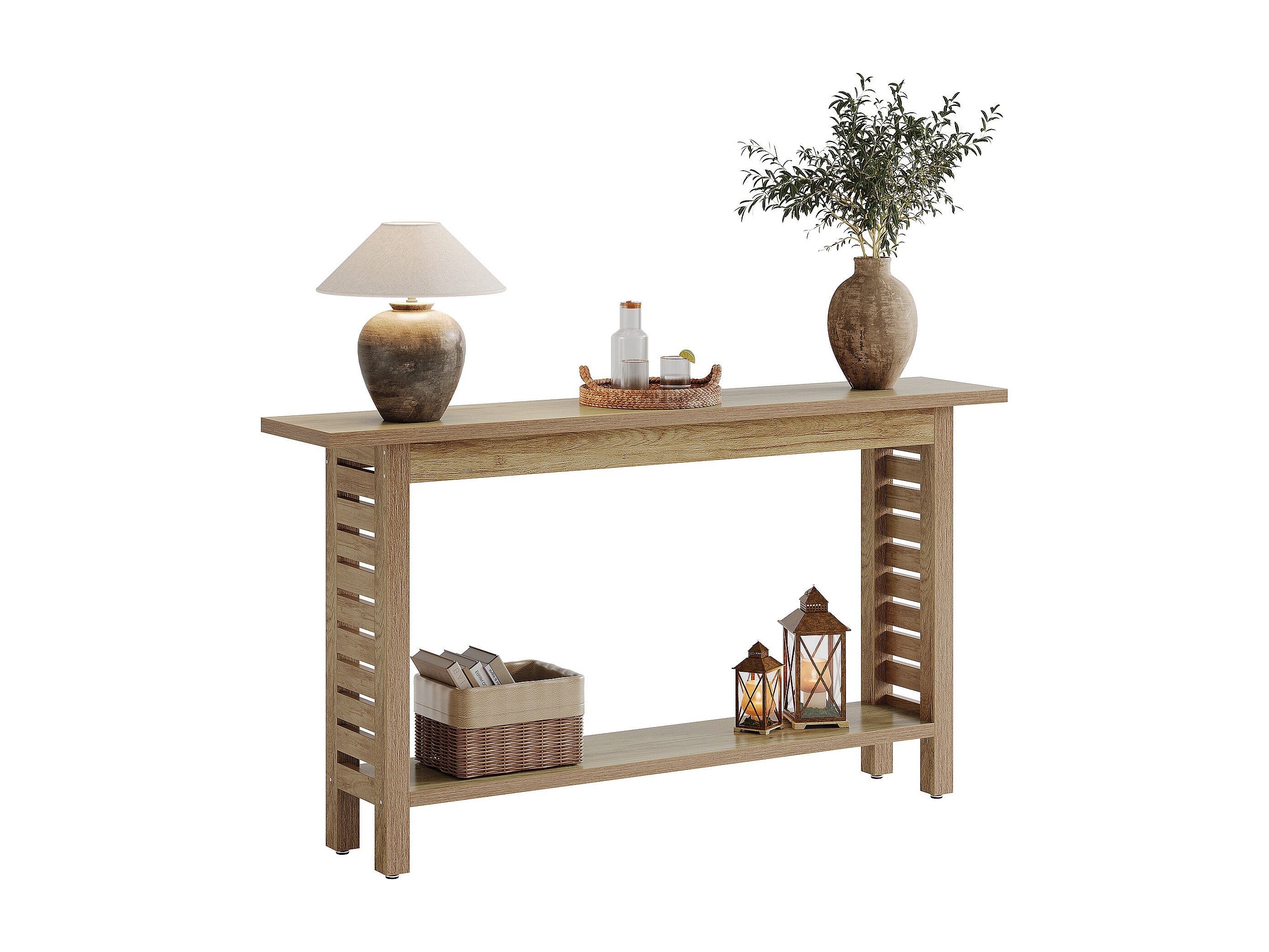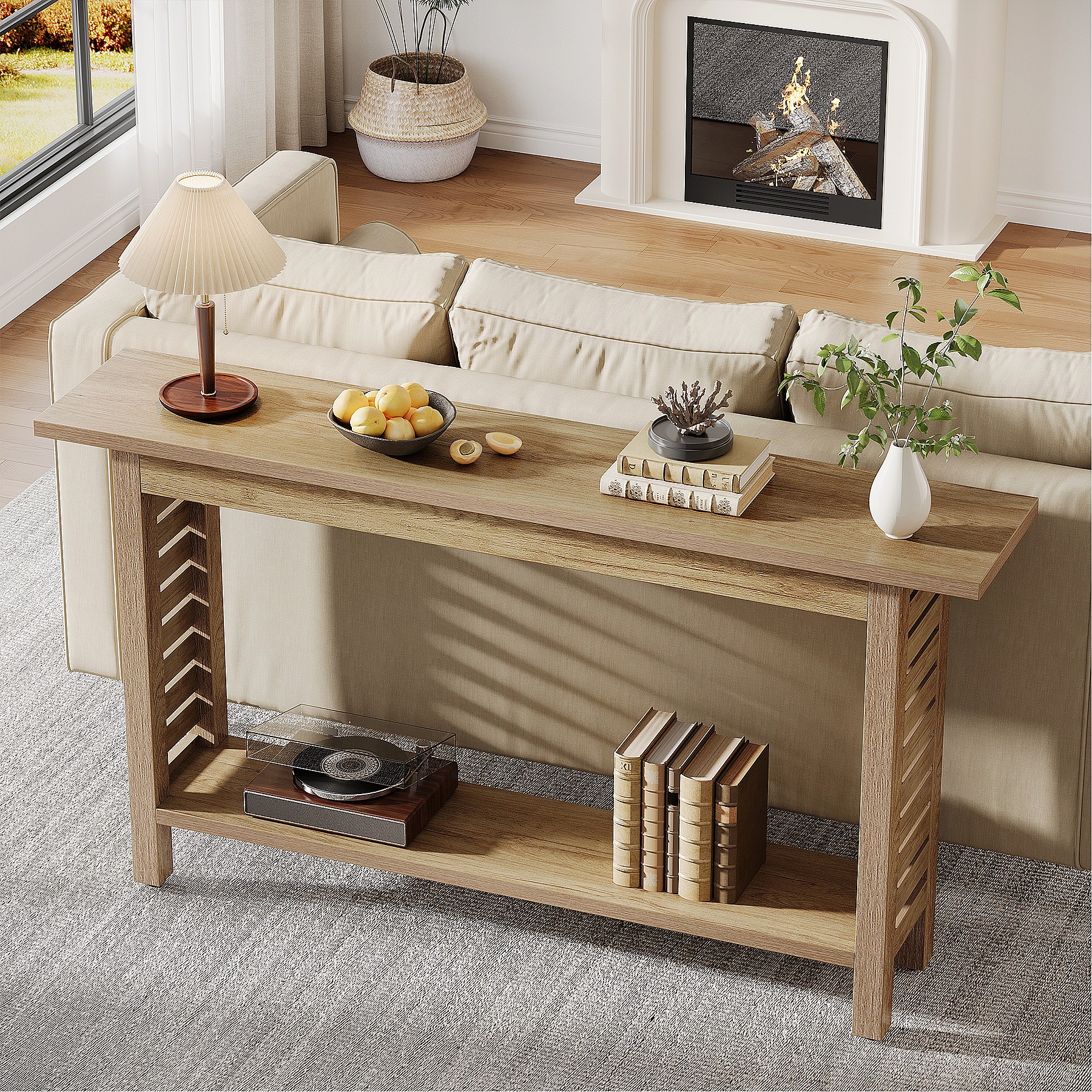 • Dwupoziomowa otwarta konstrukcja do przechowywania: Dwie przestronne, otwarte półki tego dębowego stolika konsolowego zapewniają wszechstronne miejsce do przechowywania koszyków, przedmiotów dekoracyjnych lub codziennych drobiazgów. Z łatwością uporządkuj różnorodne przedmioty codziennego użytku, eksponując jednocześnie ulubione przedmioty na tym stoliku kawowym.