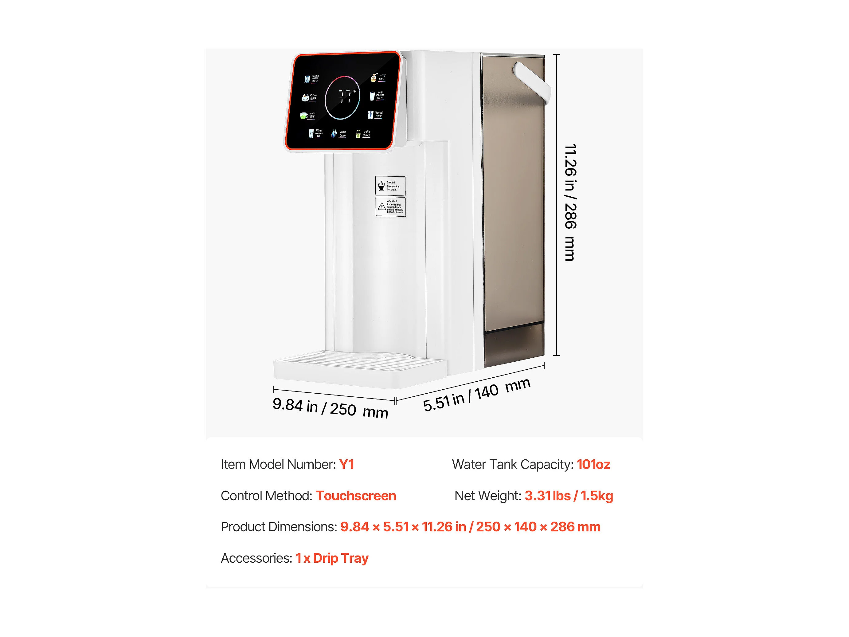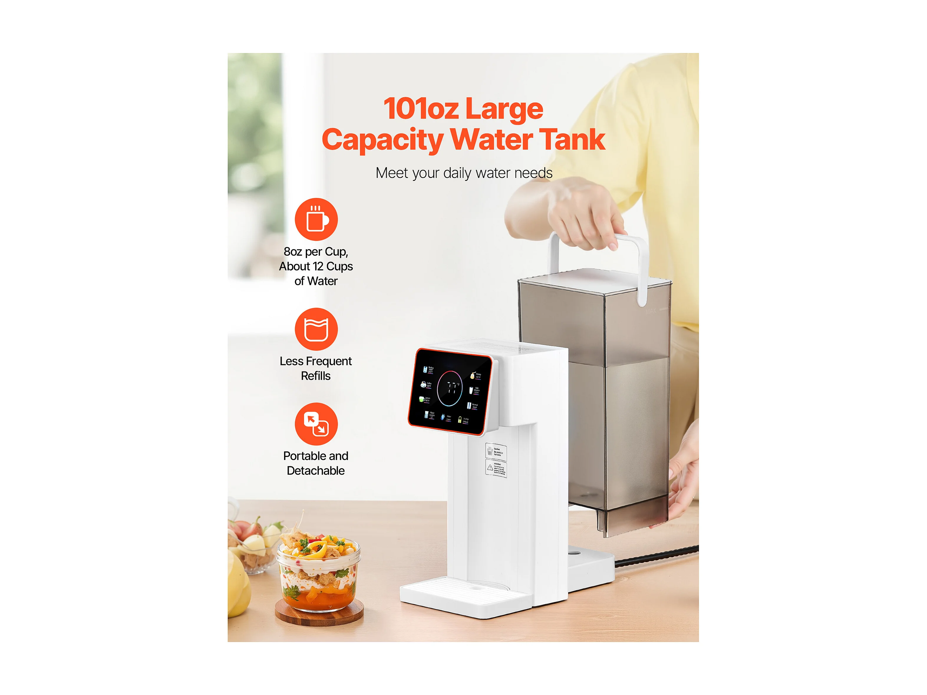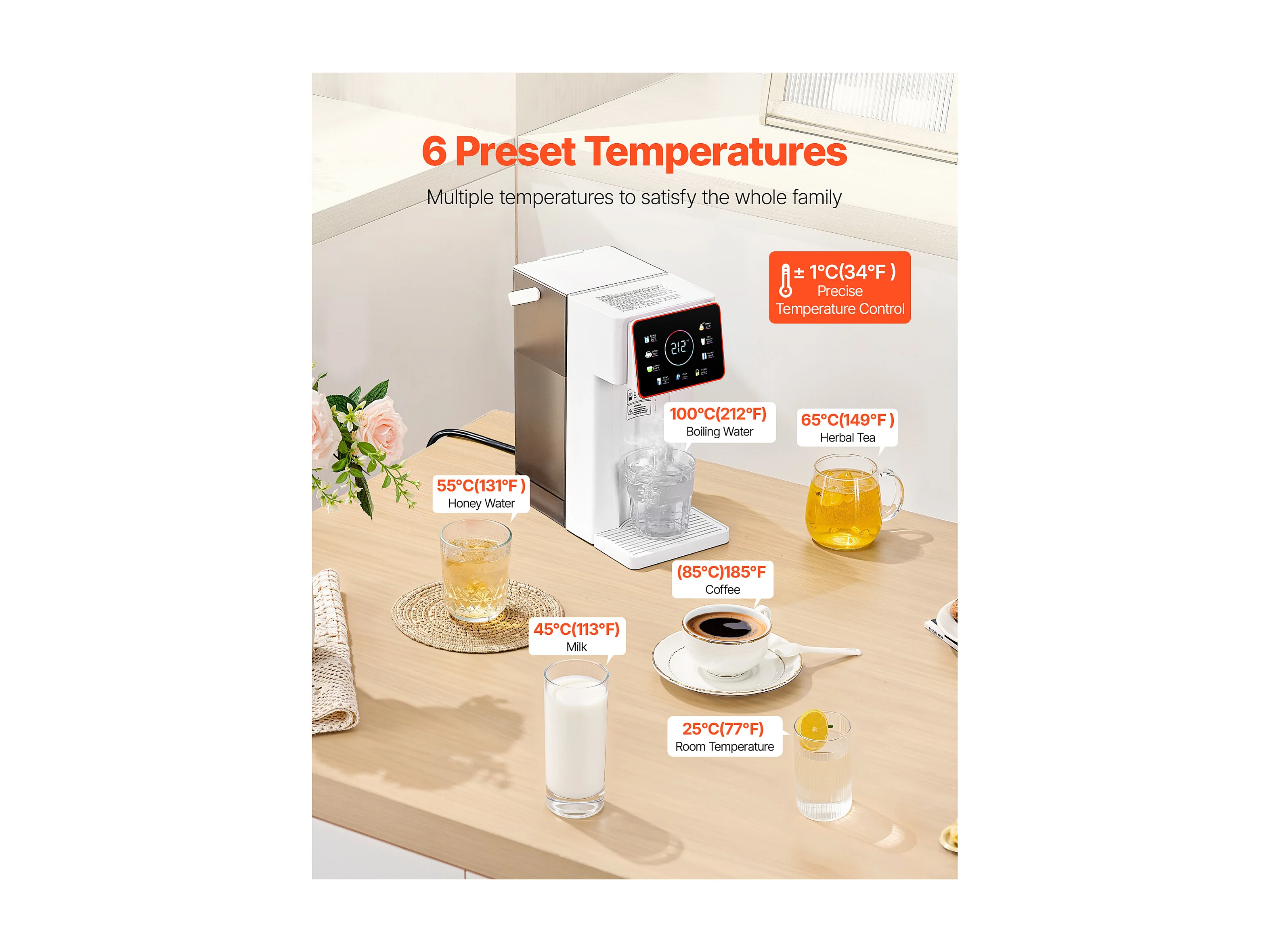 Dystrybutor Wody SucceBuy Gorącej Natychmiastowej na Blat, Fontanna z Gorącą Wodą z Wyjmowanym Zbiornikiem 3 L, 6 Regulowanych Temperatur i 8 Poziomów