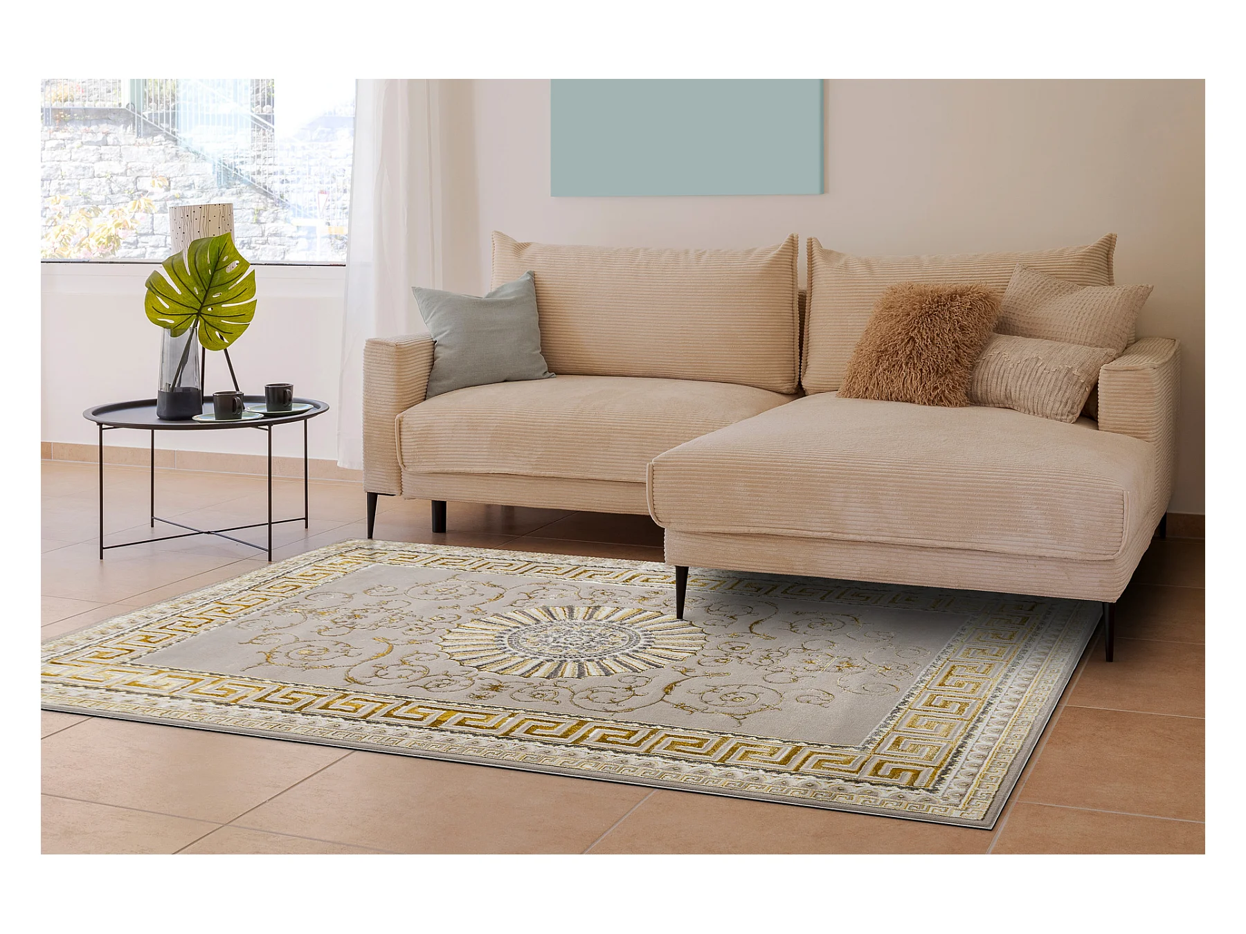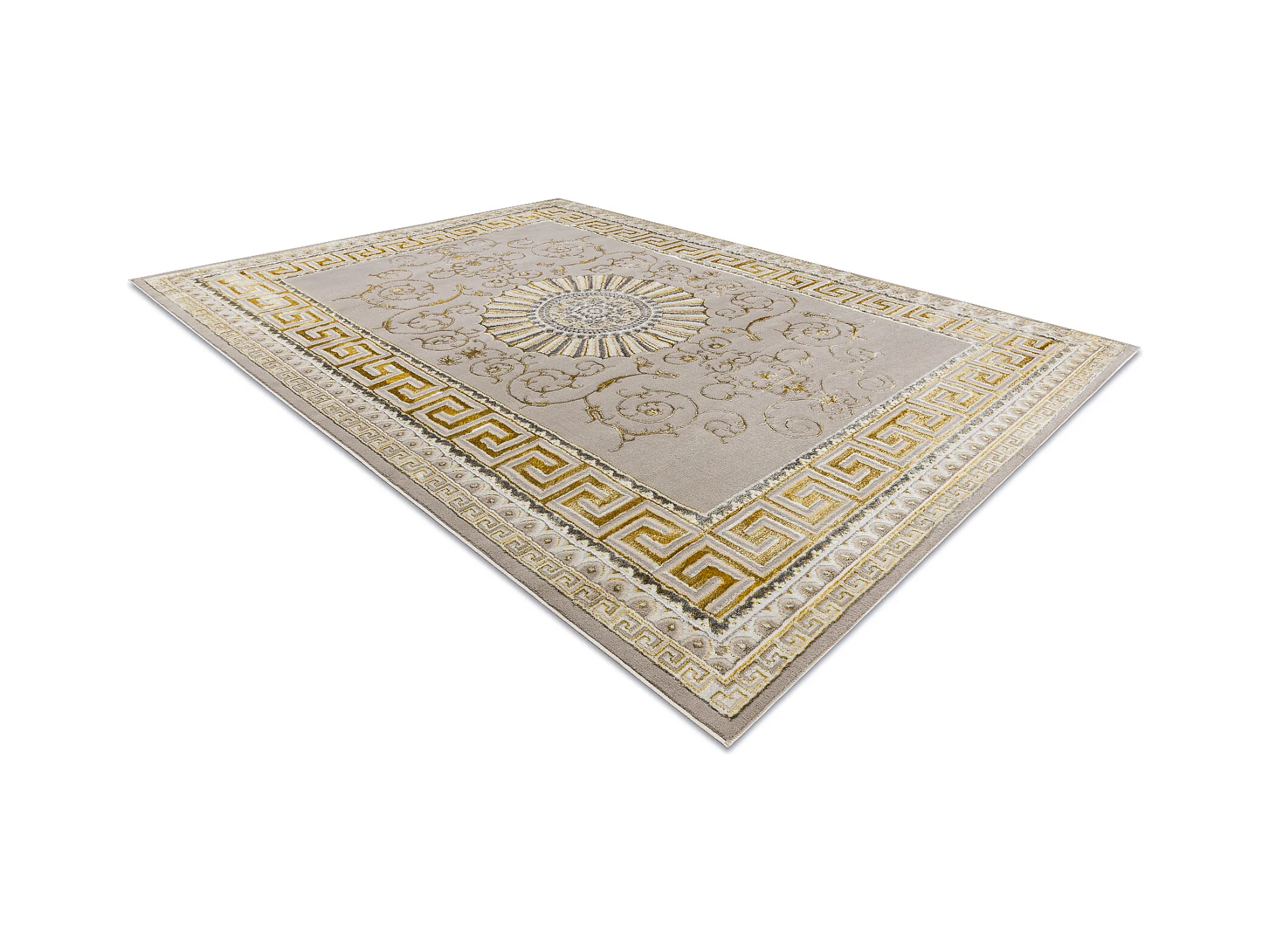 Dywan BLISS Z160AZ147 ciemny beż / złoty - Ramka, grecki ekskluzywny 180x270 cm