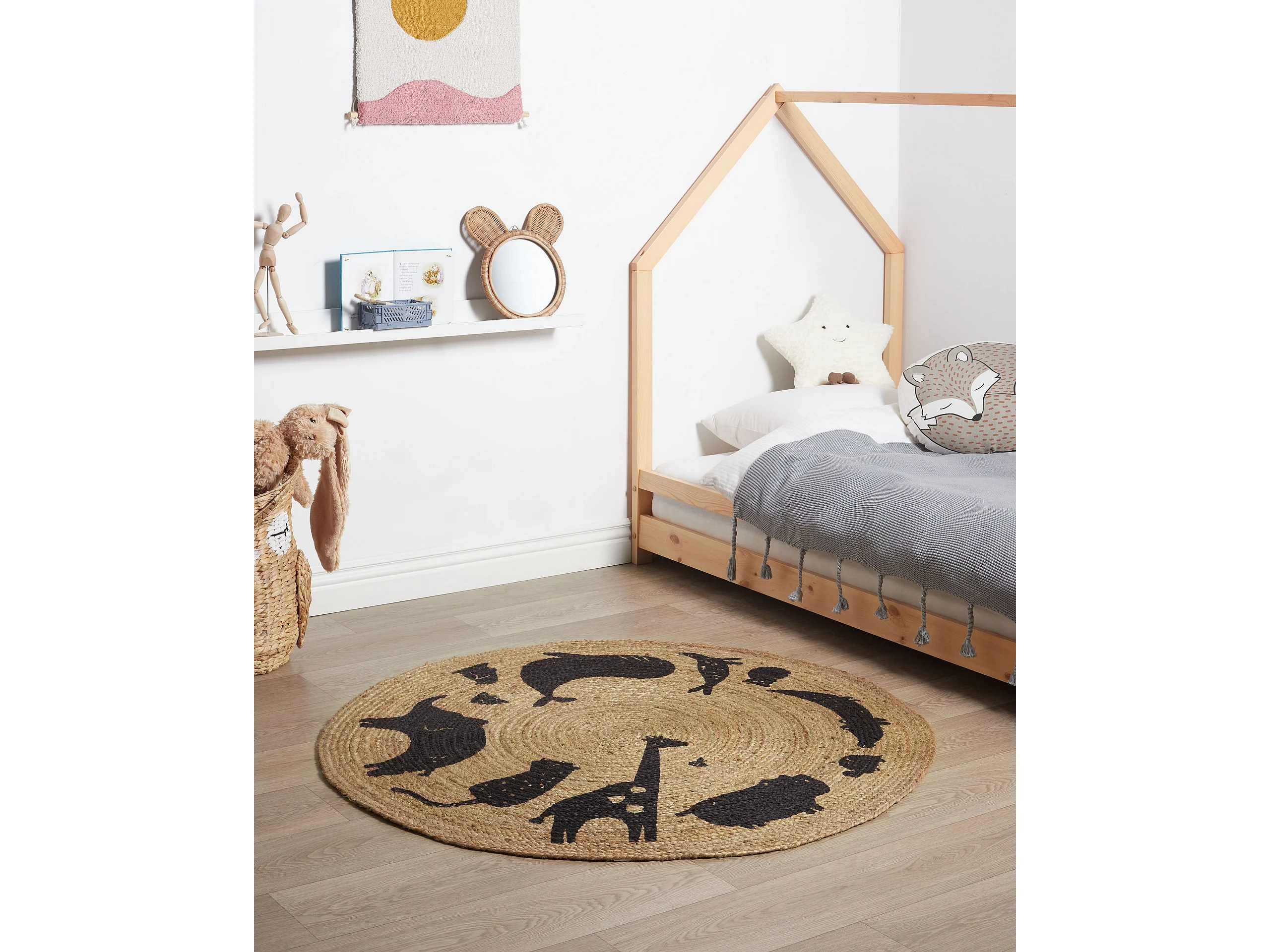 Dywan dziecięcy okrągły z juty motyw zwierząt ⌀ 120 cm beżowy EARTH
