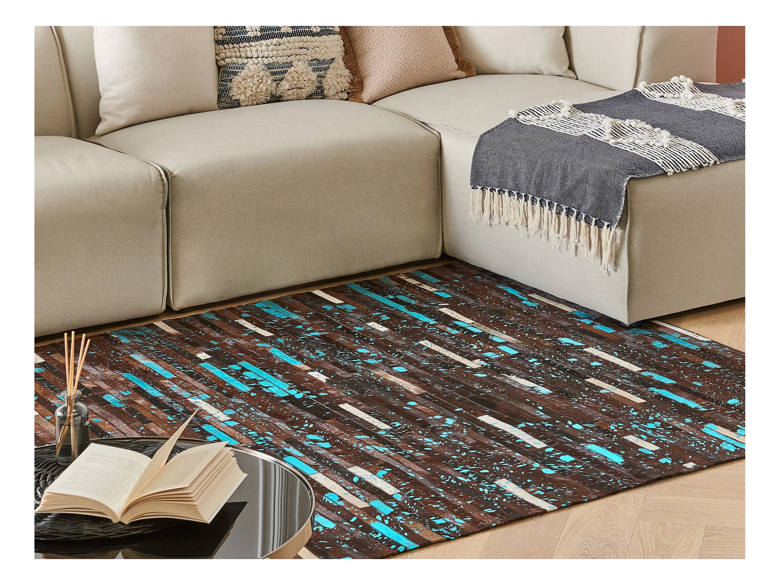 Dywan skórzany 160 x 230 cm brązowo-niebieski KISIR
