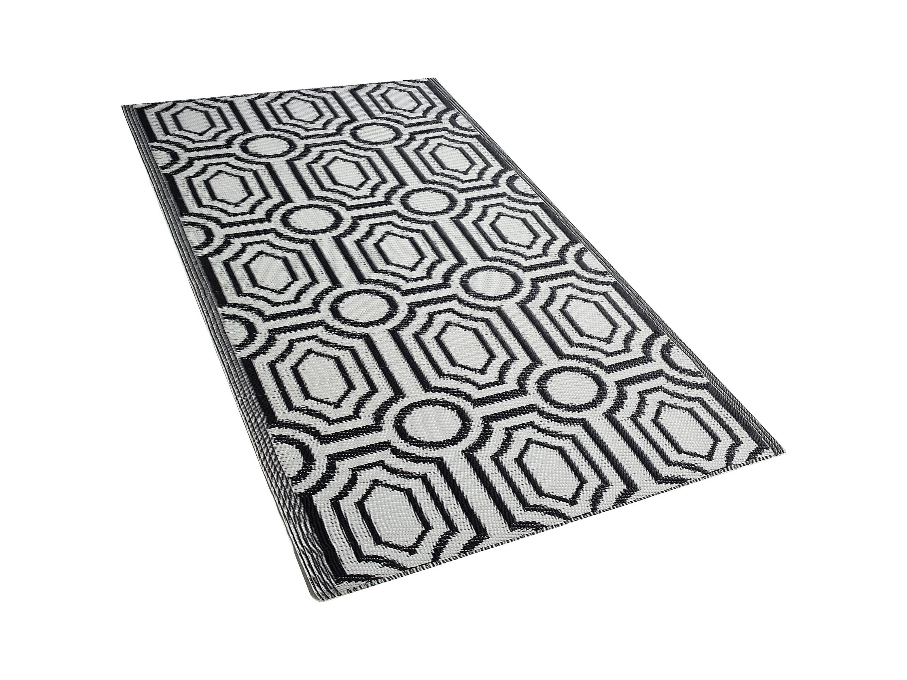Dywan zewnętrzny dwustronny 90 x 180 cm czarno-biały BIDAR
