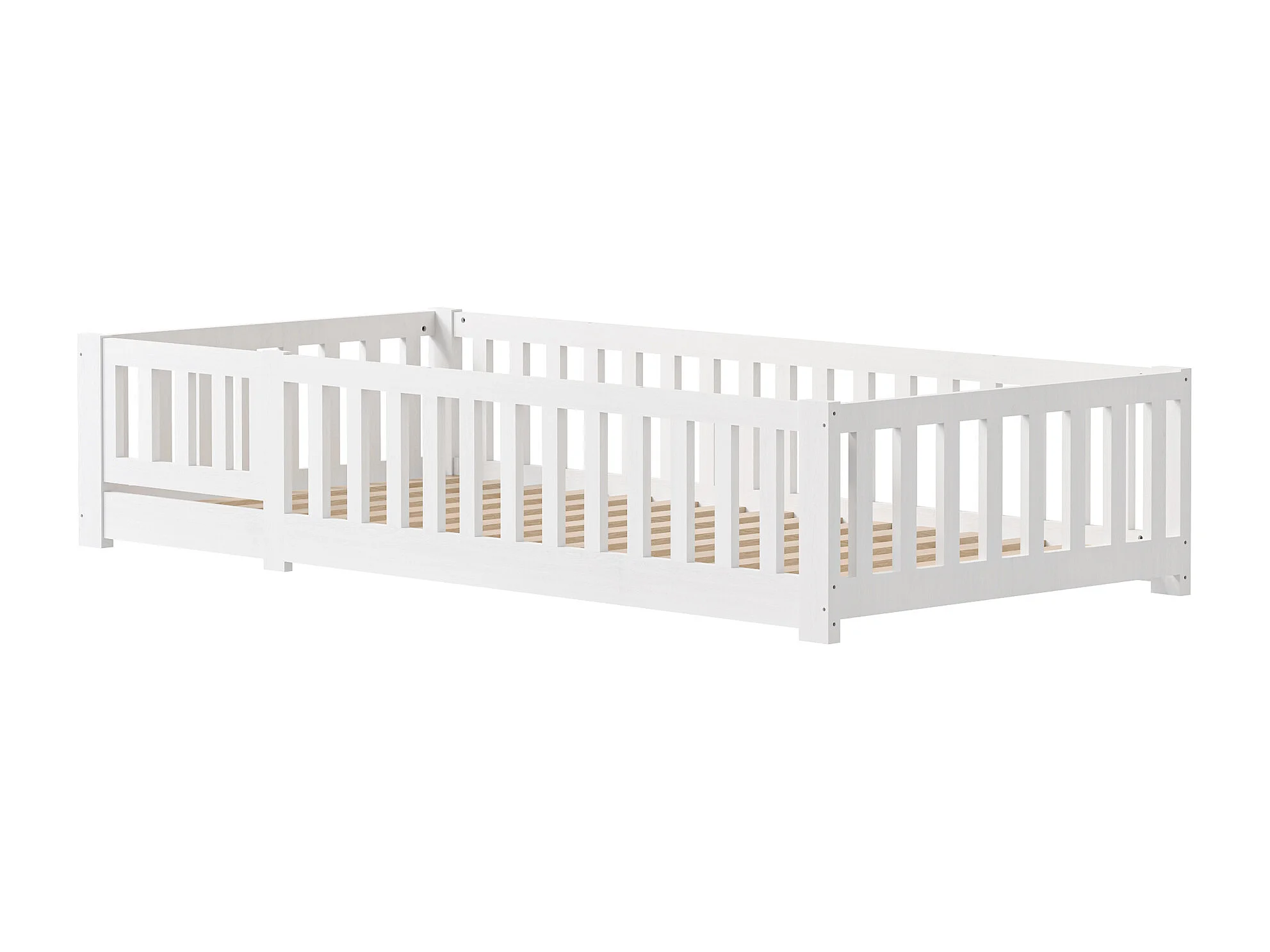 Dziecięce łóżko Montessori na podłogę z litego drewna sosnowego 90x190 cm z demontowalnymi barierkami bezpieczeństwa, niskoprofilowy design i nietoksyczna farba