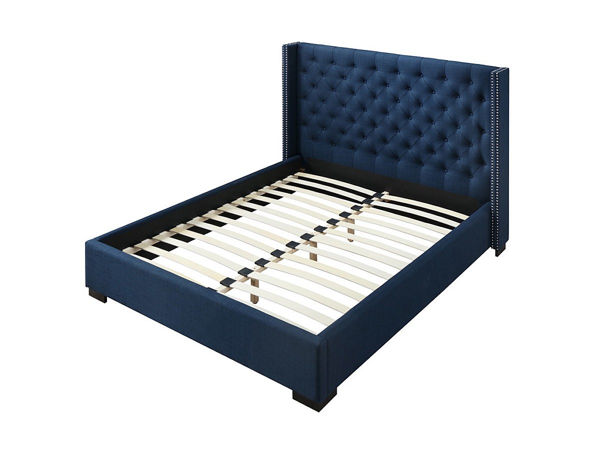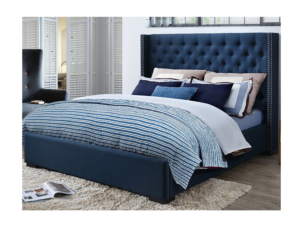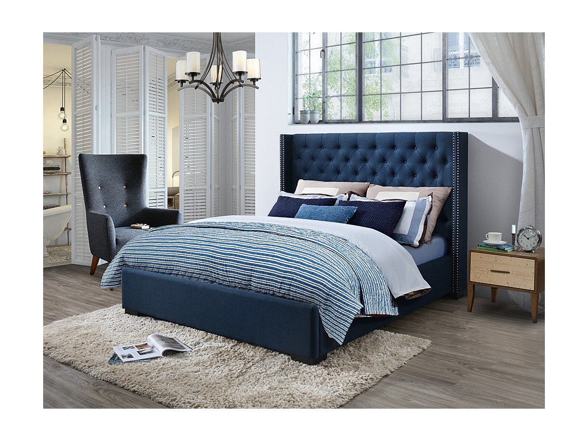 Łóżko MASSIMO z pikowanym zagłówkiem – 180 × 200 cm – tkanina w kolorze niebieskim