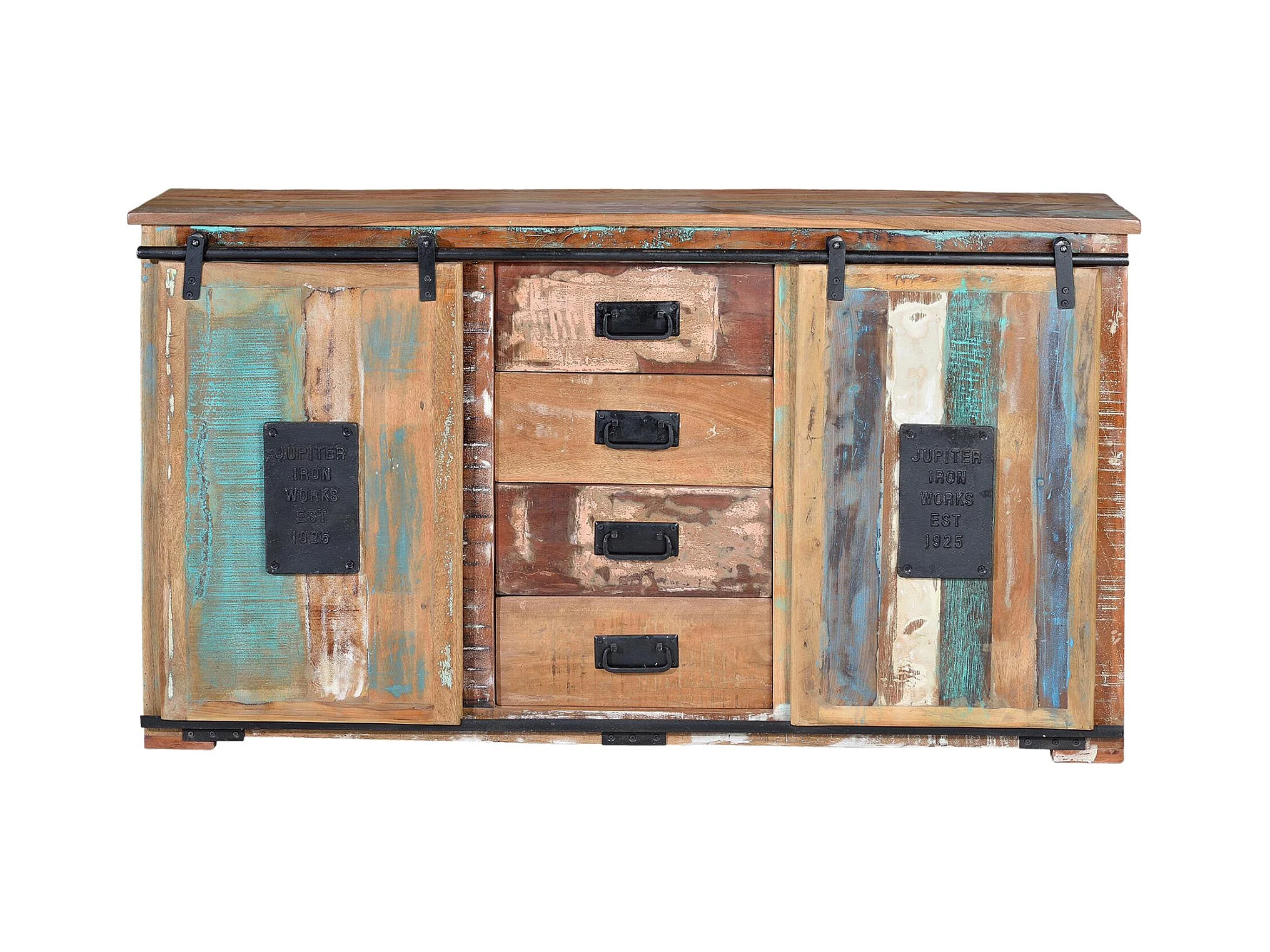 Wielokolorowy kredens z odzyskanego drewna
