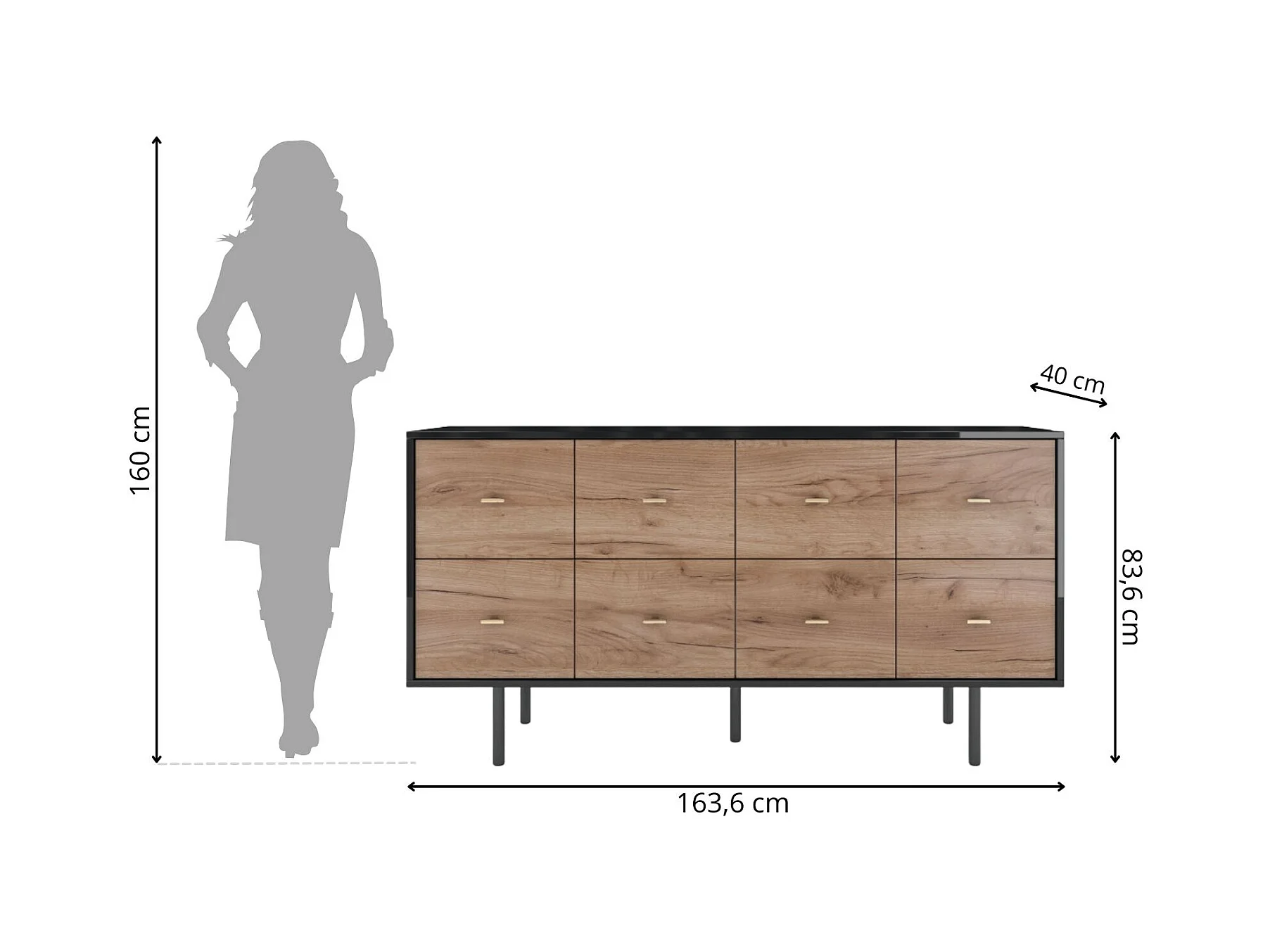 Komoda MAUD 160 czarna/dąb