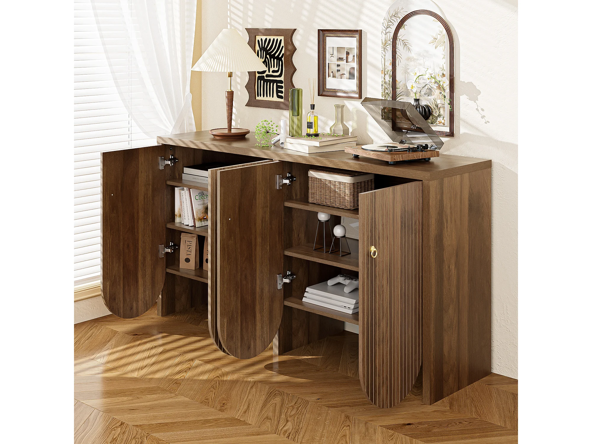 Elegancka komoda w kolorze orzecha włoskiego - 147 x 40 x 80 cm - z 4 drzwiami + regulowane półki - MDF - naturalny