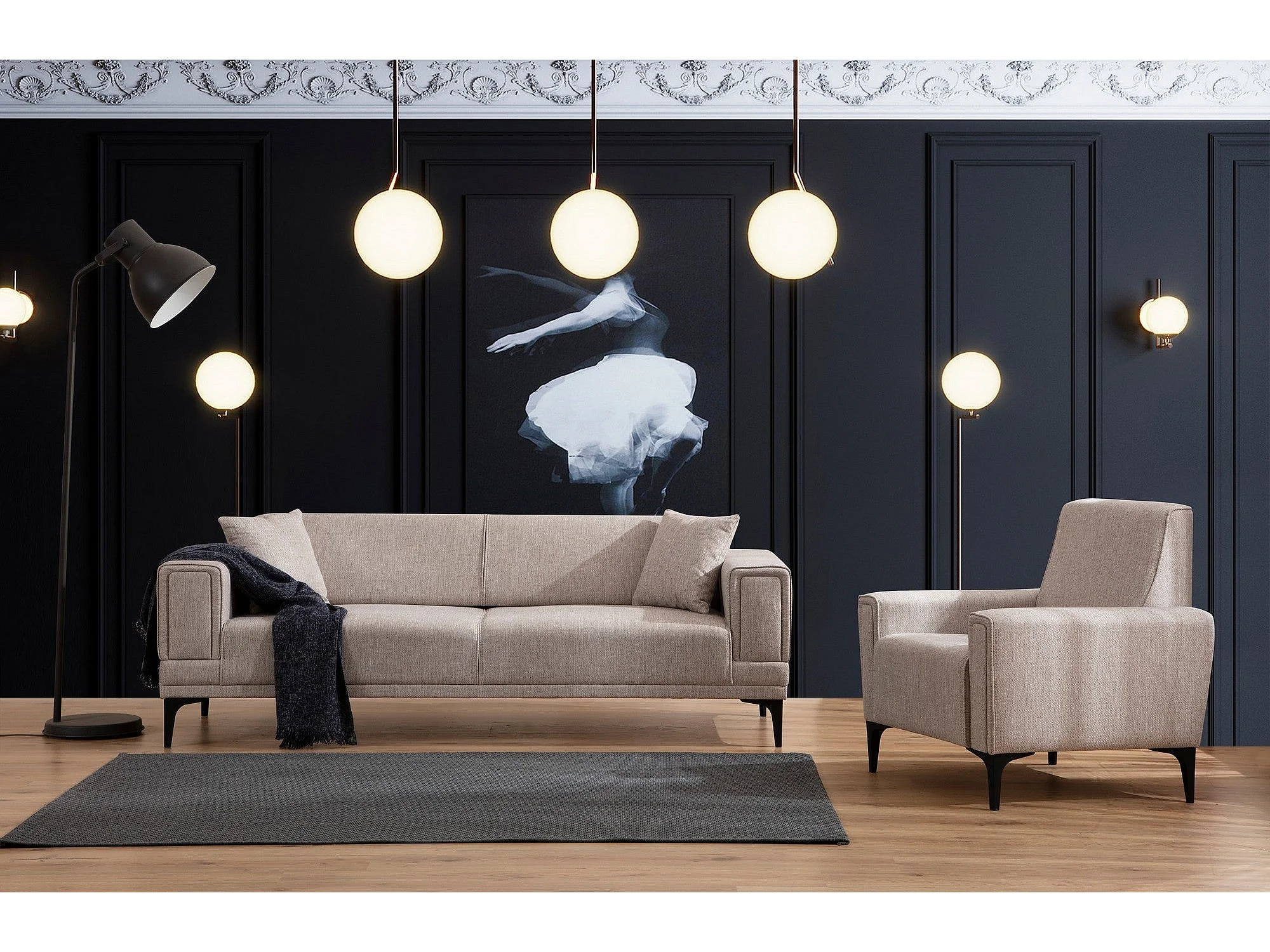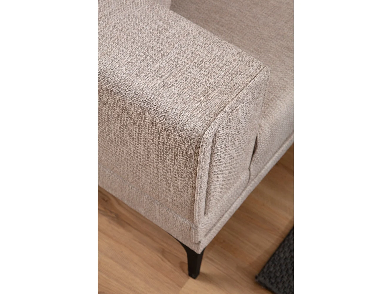 Elegancki fotel 1-osobowy, jasnobrązowy, 90 x 85 x 77 cm | Stelaż z drewna bukowego i płyty wiórowej, tkanina 100% poliester | Poduszki piankowe