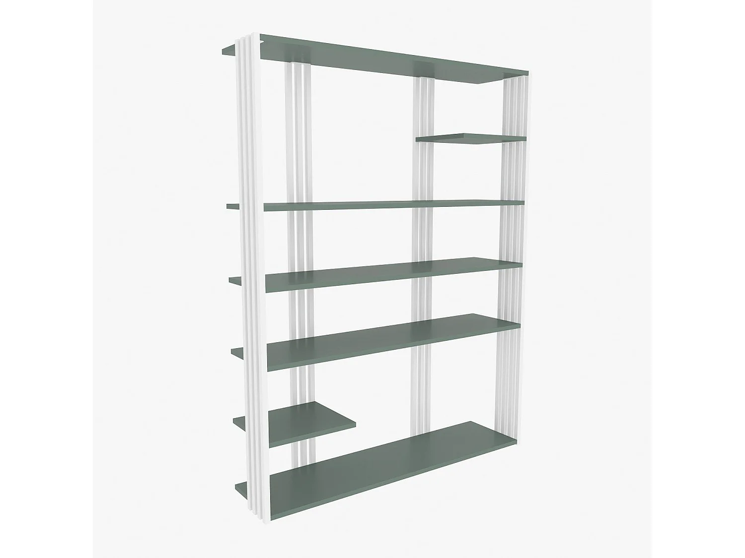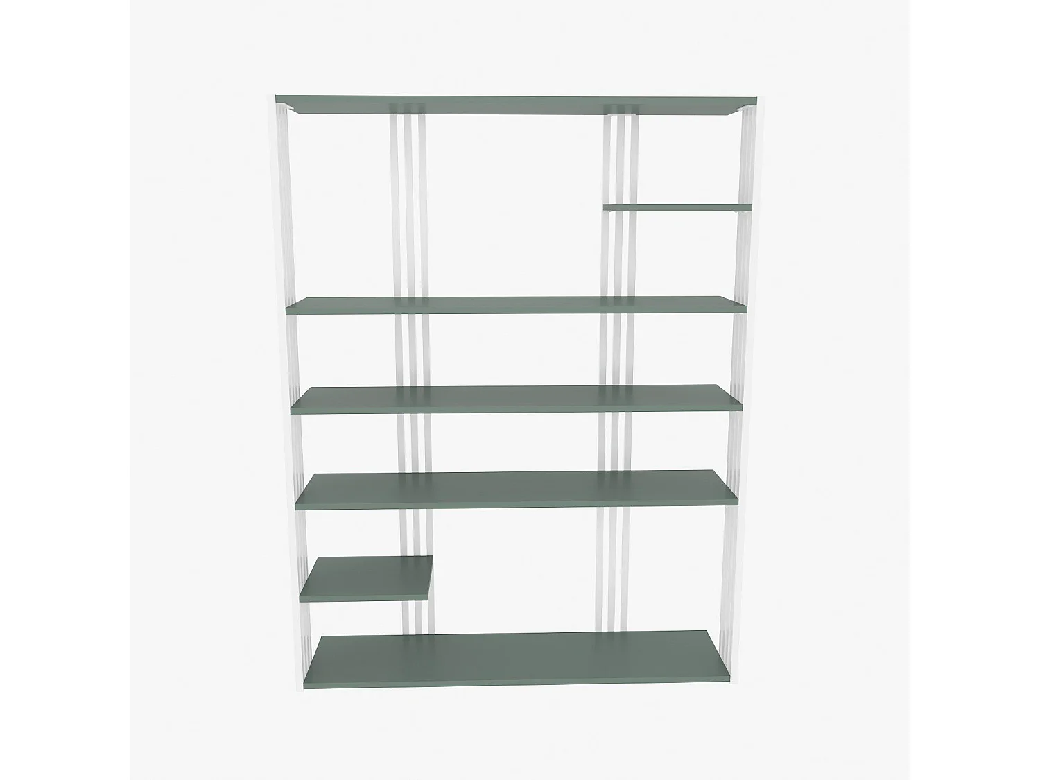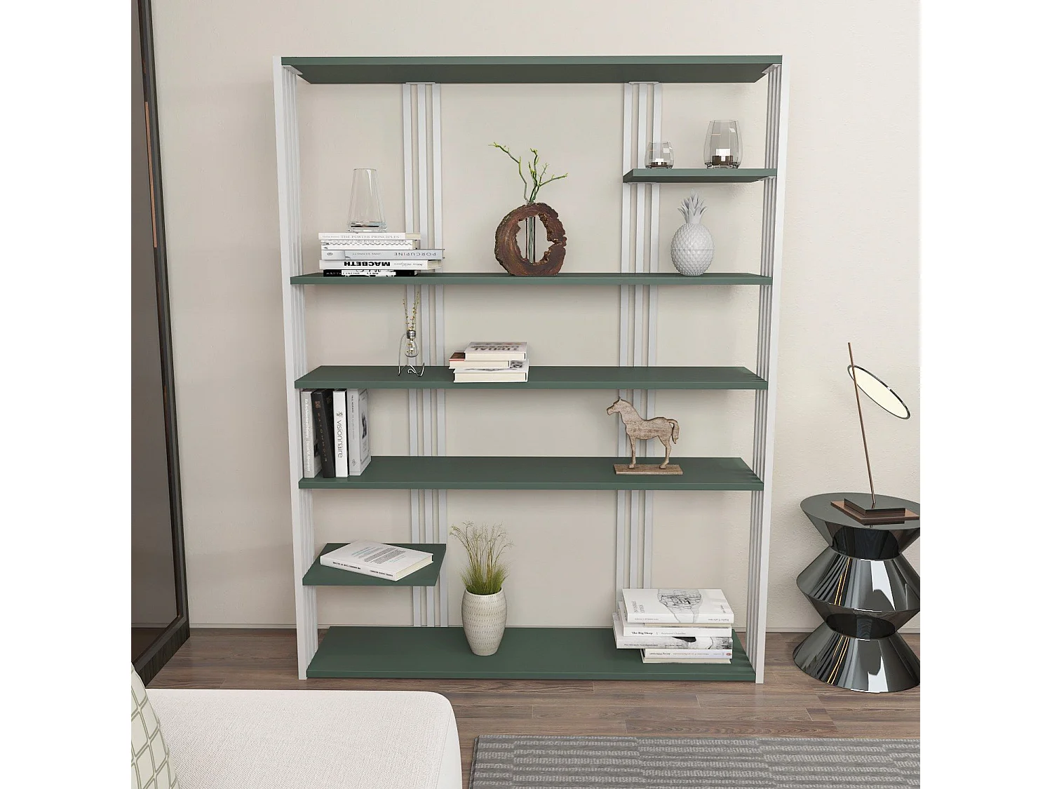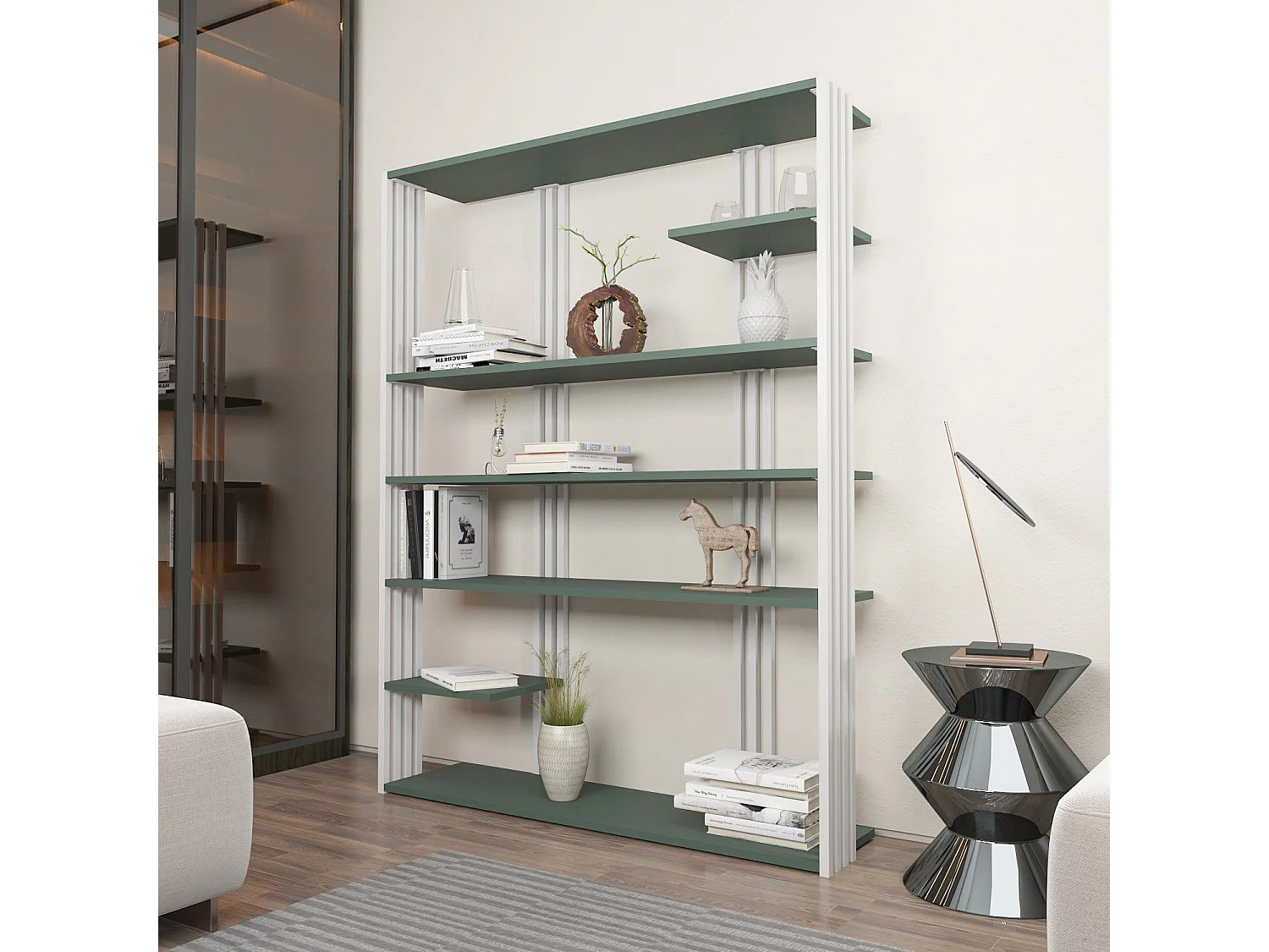 Elegancki zielono-biały regał na książki, 120 cm x 160 cm x 29,6 cm | Płyta wiórowa pokryta melaminą w 100%, grubość 18 mm | Idealny do nowo