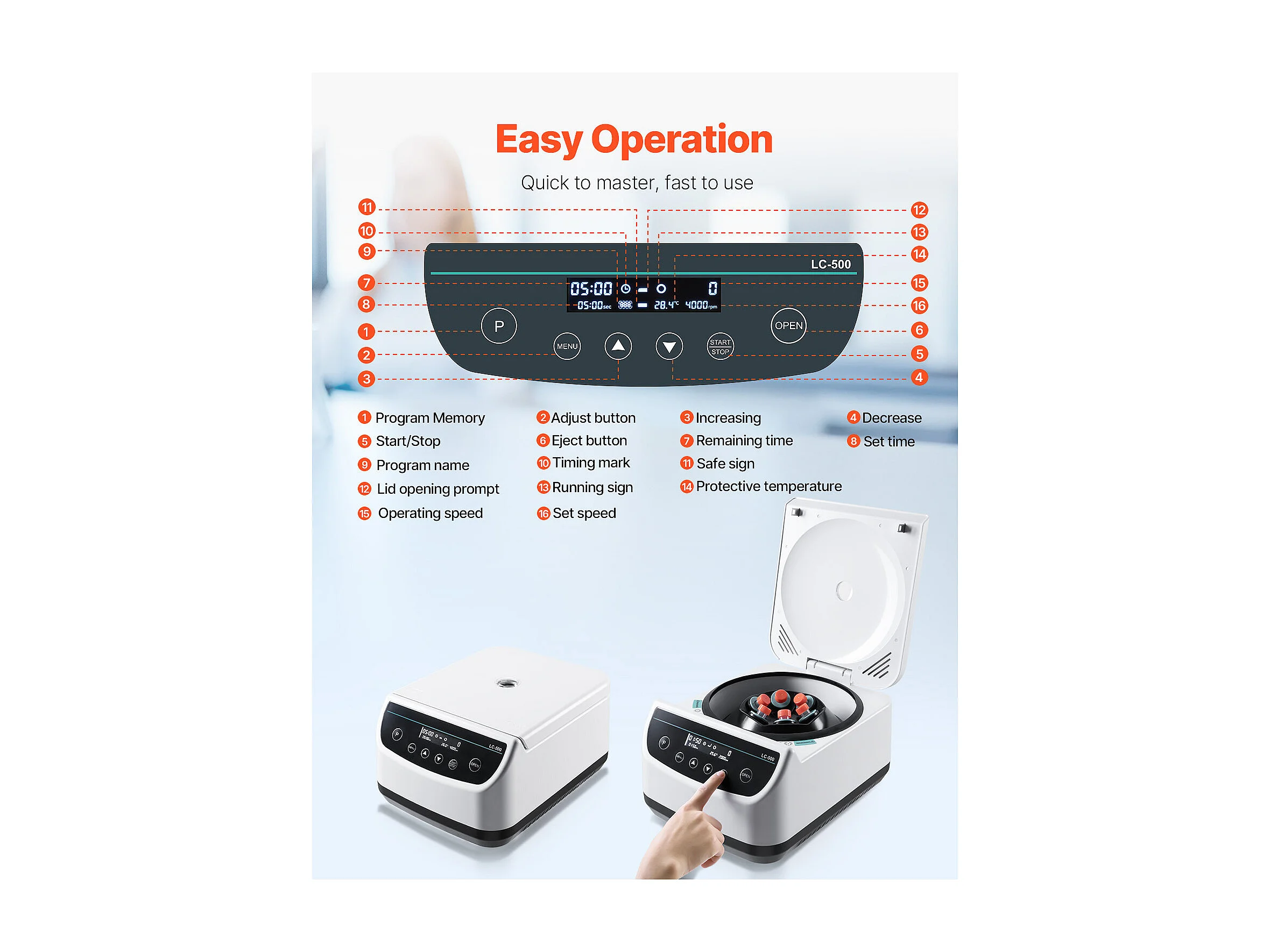Elektryczna Wirówka SucceBuy, 100-2100 x g RCF, Wirówka Laboratoryjna z 1 Wirnikiem do Probówek 2/5/10/15/50 ml, do Różnych Eksperymentów