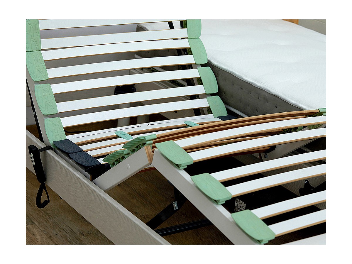Elektryczny stelaż z listewkami i 5 płaszczyznami spania rozkłada w równomierny sposób ciężar śpiącej osoby dzięki 32 listewkom.