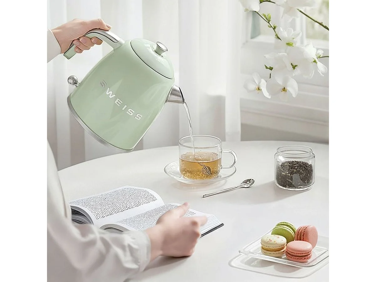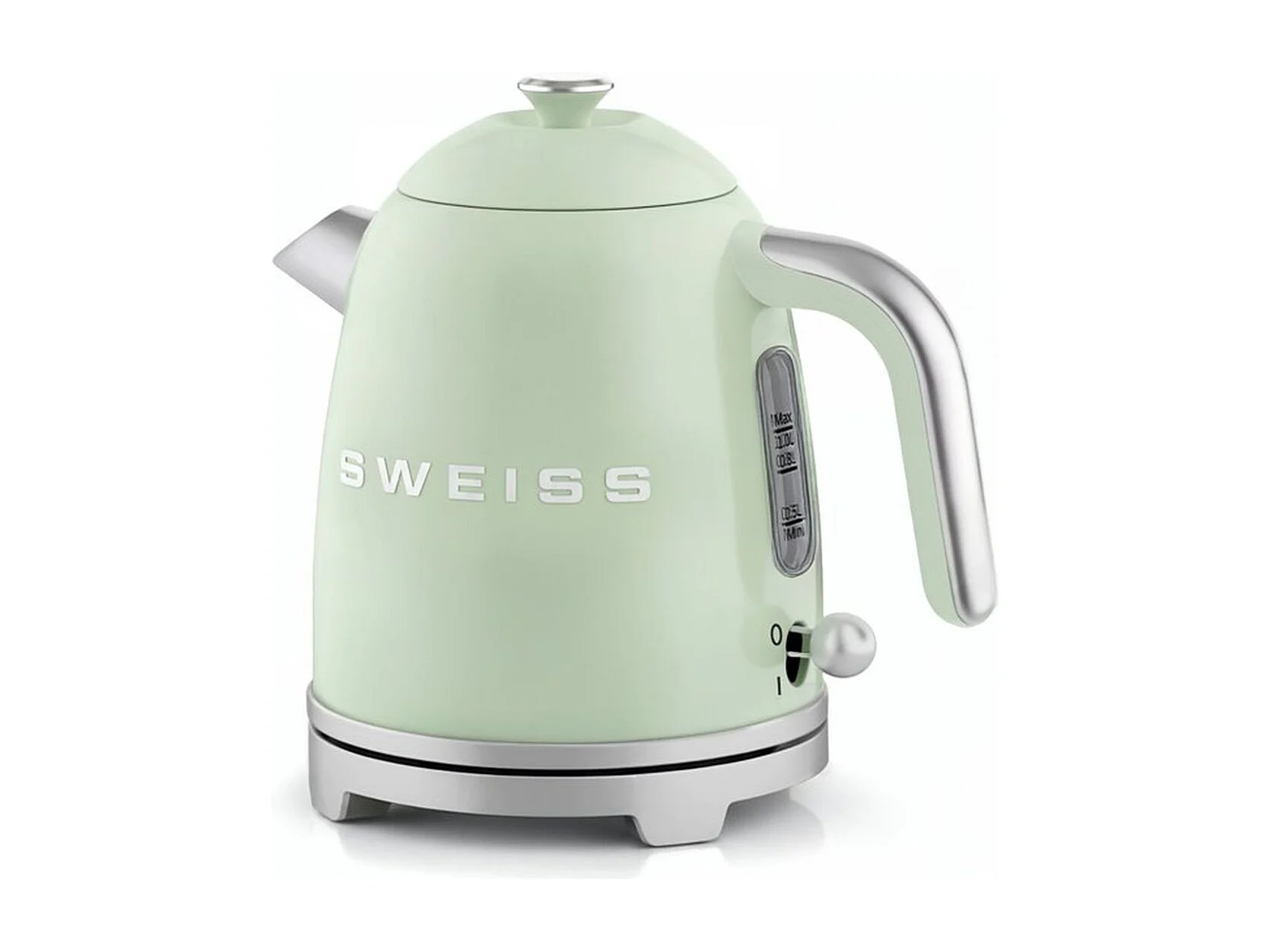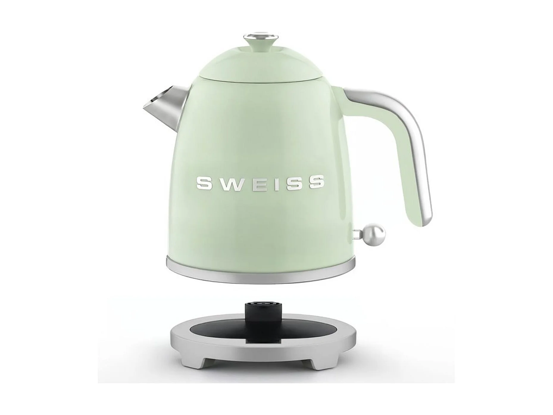 Elektryczny czajnik vintage SWEISS KTS7 1L 1000W stal nierdzewna zielony z automatycznym wyłącznikiem i obrotową podstawą 360°