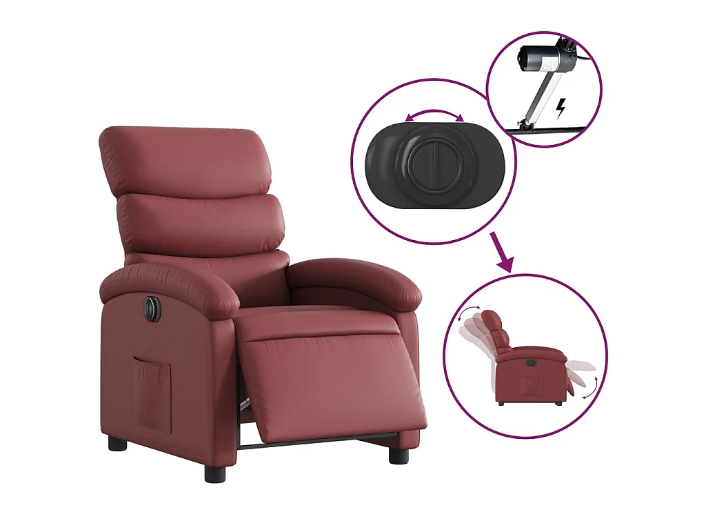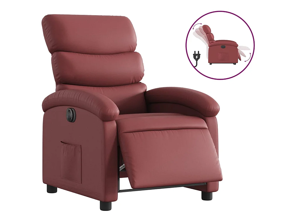 Elektryczny fotel relaksacyjny Bordowy z funkcją automatycznego pochylenia
