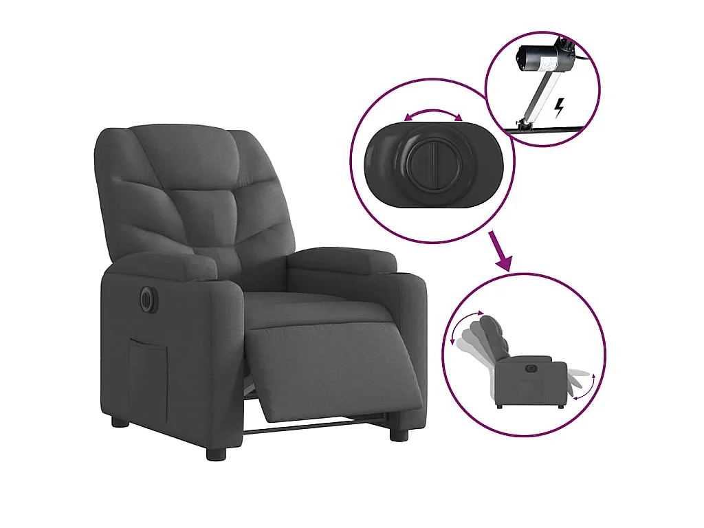 Elektryczny fotel relaksacyjny Czarny Tkanina z Funkcją Automatycznego Pochylenia