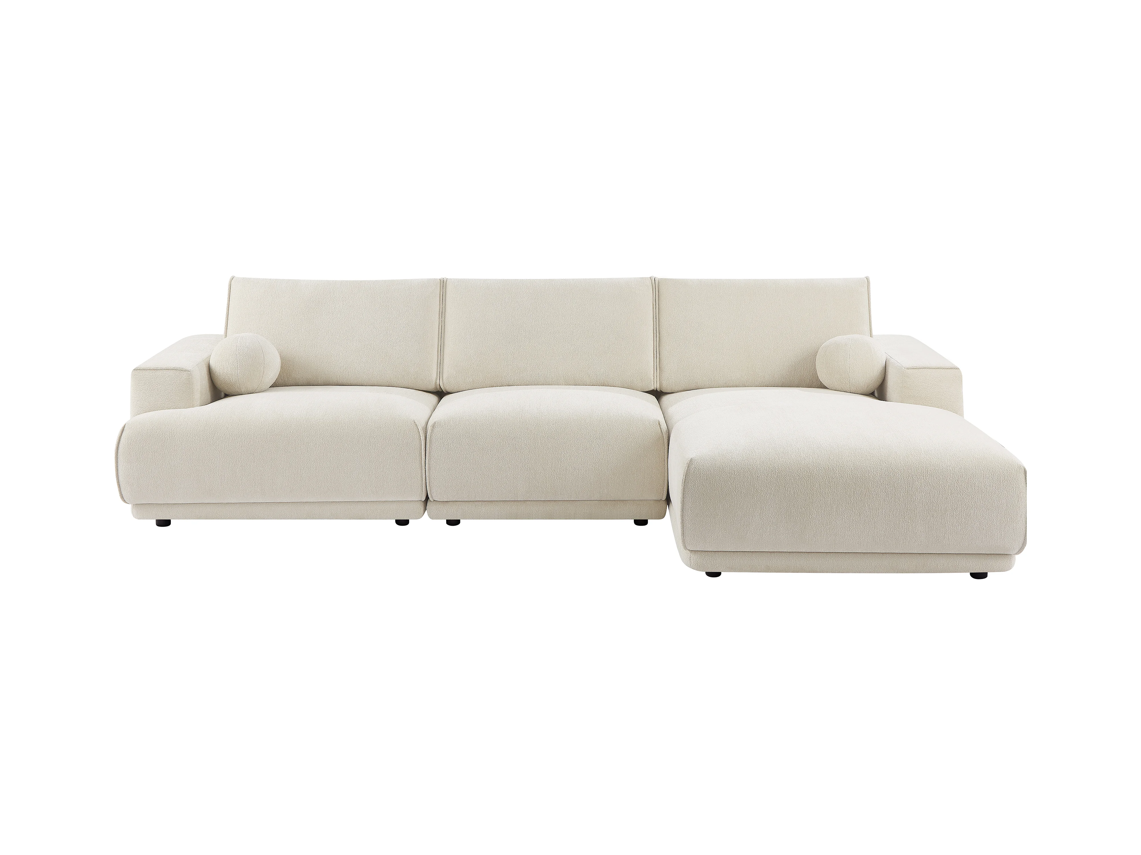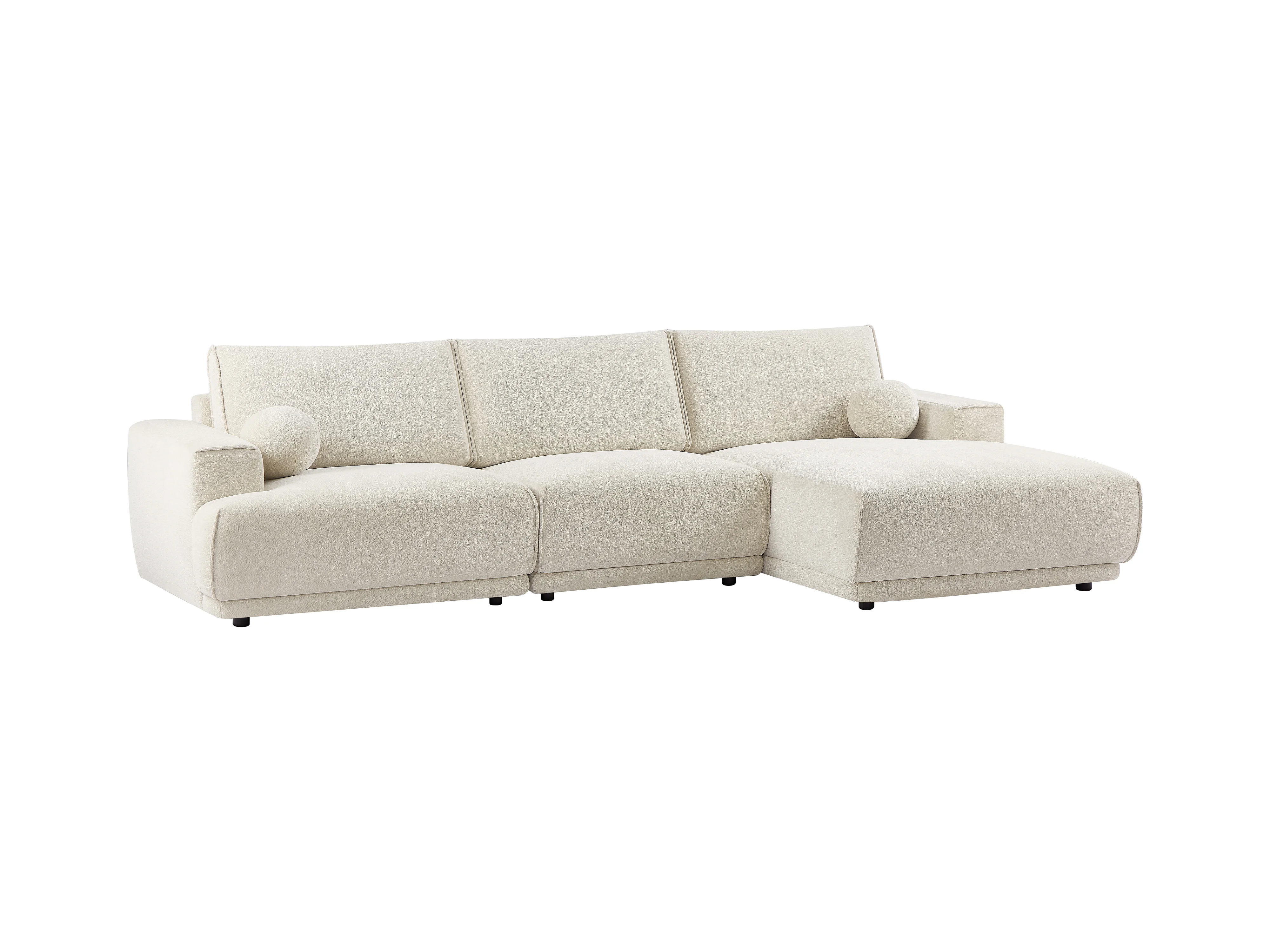 Narożna kanapa prawostronna, beżowa z tkaniny szenil EMABI od Maison Céphy