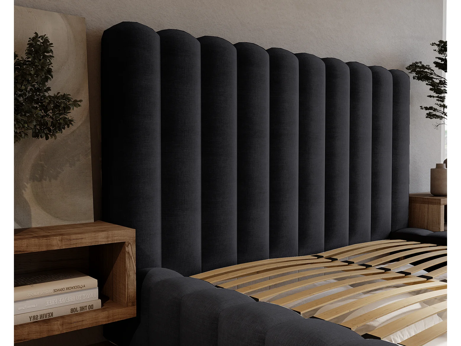 Emporius Elise łóżko z grubą pianką 180x200 - nowoczesne łóżko z pojemnikiem i stelażem, tkanina aksamitna, czarny (Ikoo 22)