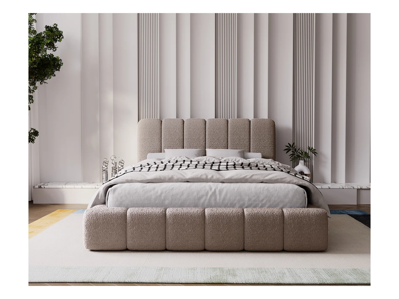 Emporius Valetta łóżko dwuosobowe 200x200 - wyoski przód, pojemnik, tkanina boucle - łóżko sypialniane w nowoczesnym stylu - brązowy (Anthology 5)