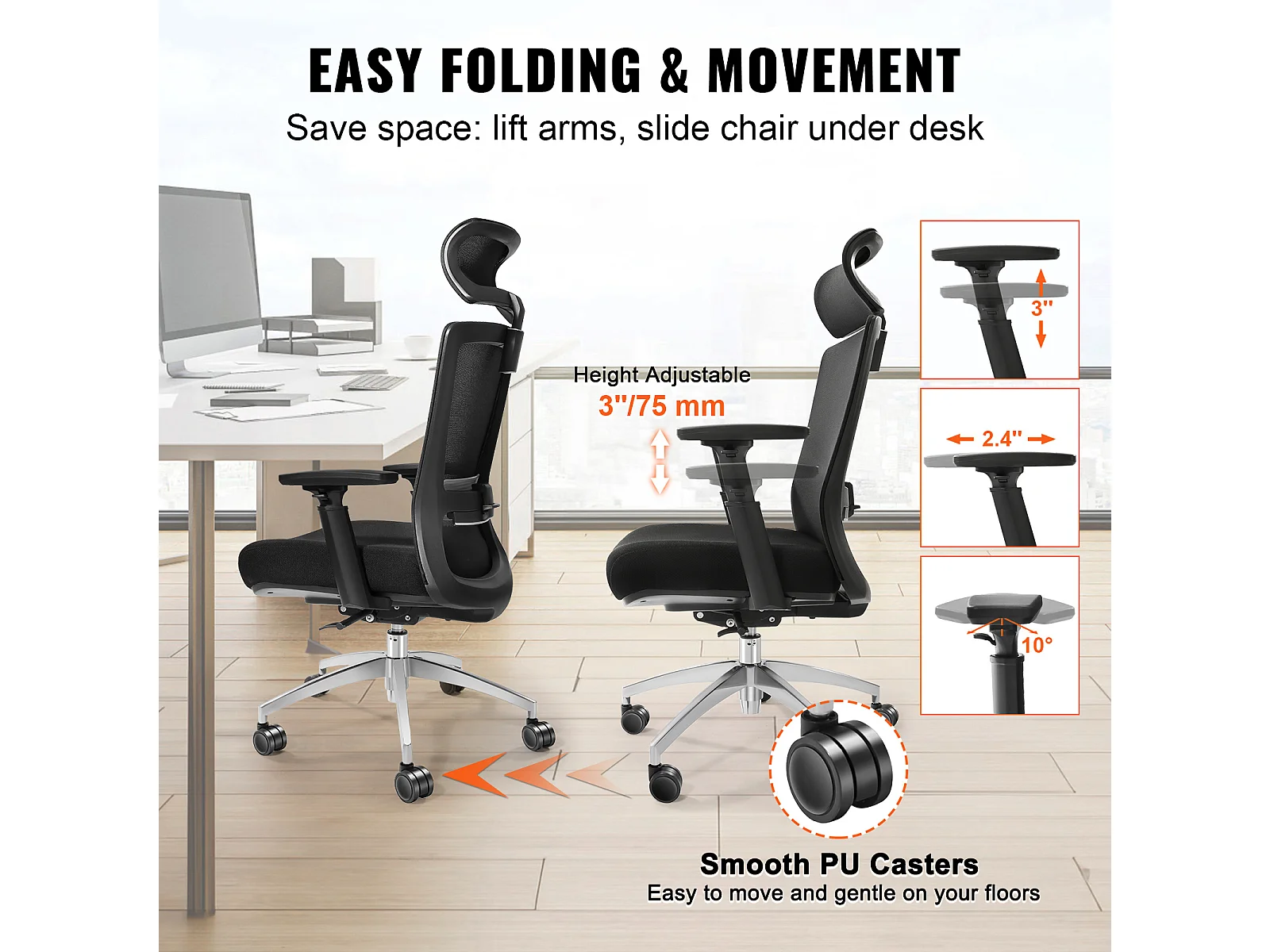 Ergonomiczny Fotel Biurowy, SucceBuy, Obrotowy Fotel Biurowy z Siatki, Podparcie Odcinka Lędźwiowego Kręgosłupa