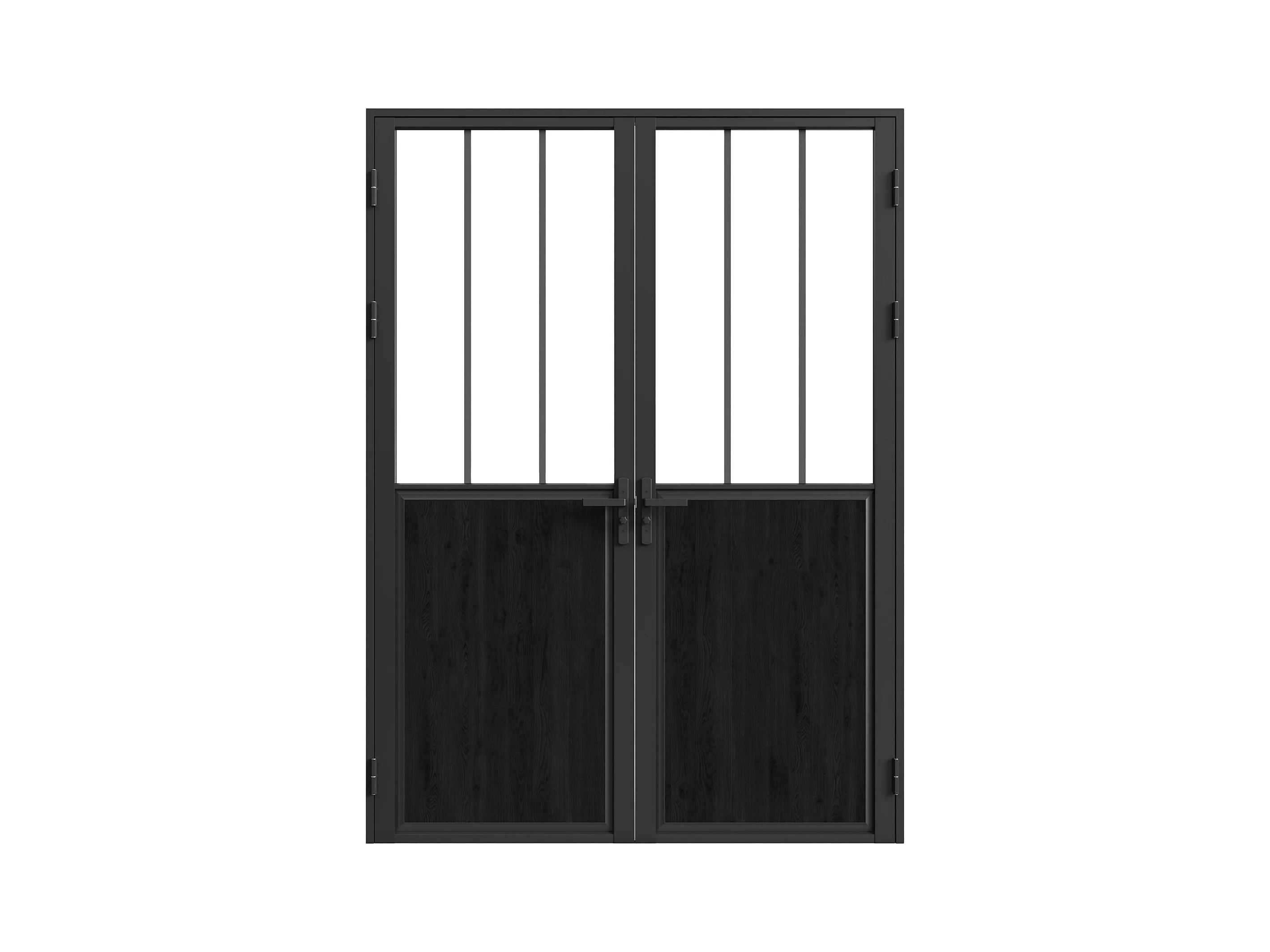 Drzwi kompletne 2-skrzydłowe dwustronne z aluminium i szkła hartowanego w stylu industrialnym - 2 x wys. 204 x szer. 83 cm - Czarny - ERMELO