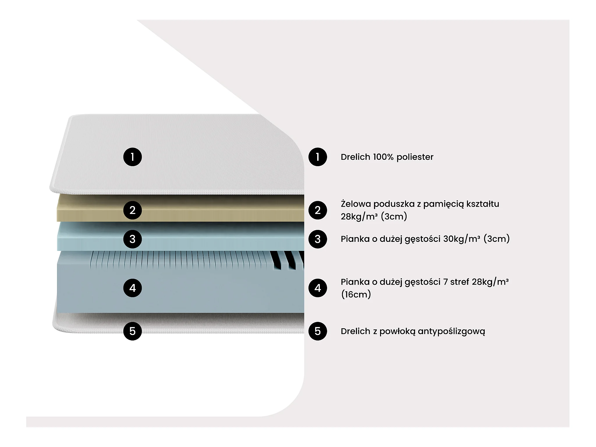 Materac 180 x 200 cm z pianki HD 7 stref i zdejmowana warstwa żelowa z pamięcią kształtu gr. 22 cm - FAGANI od YSMÉE