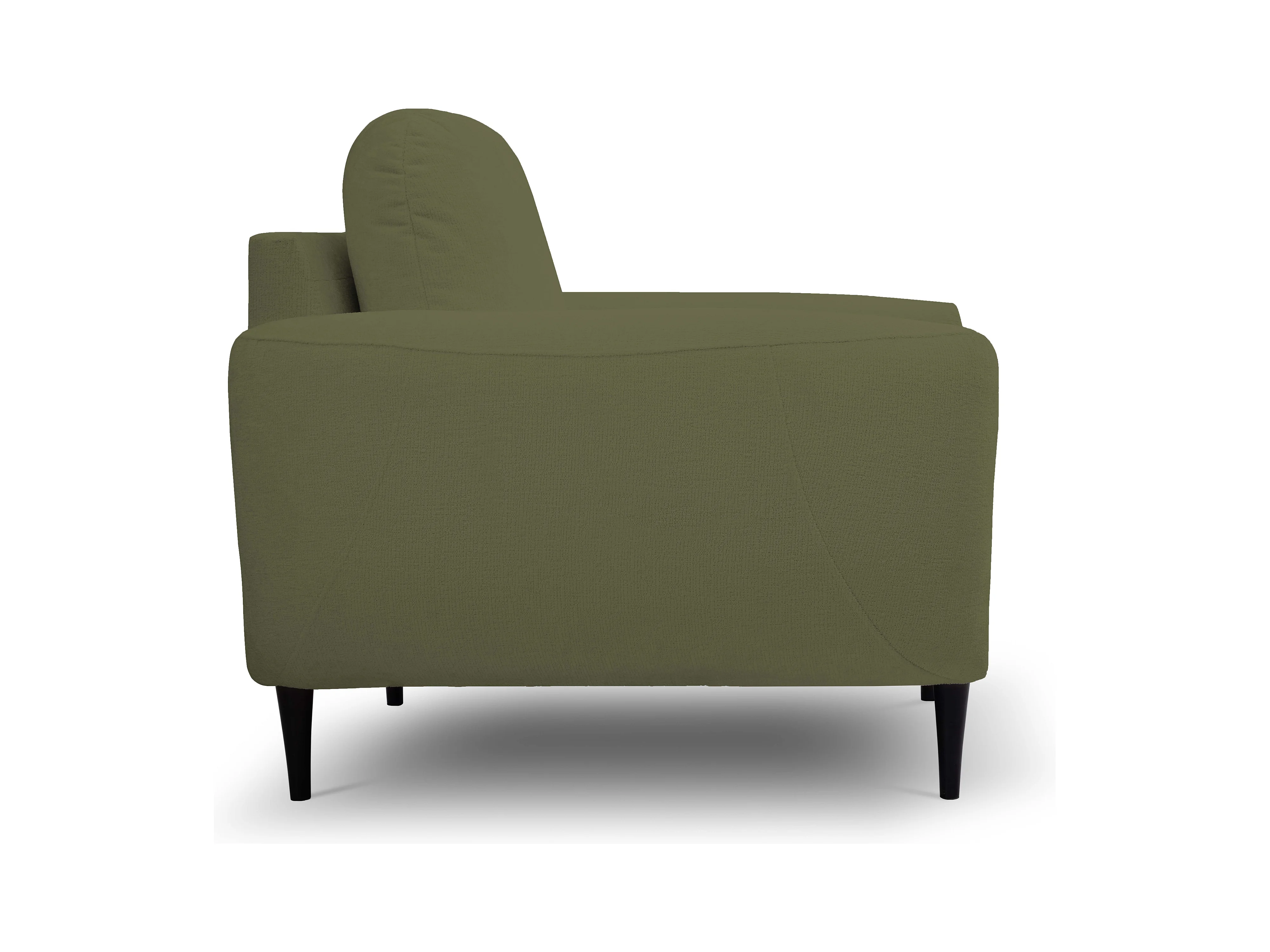 Fotel BOHO nowoczesny elegancki z drewnianymi nogami, z oparciem i podłokietnikami, do salonu i biura, rozmiar: 90x91x102cm OLIWKOWY