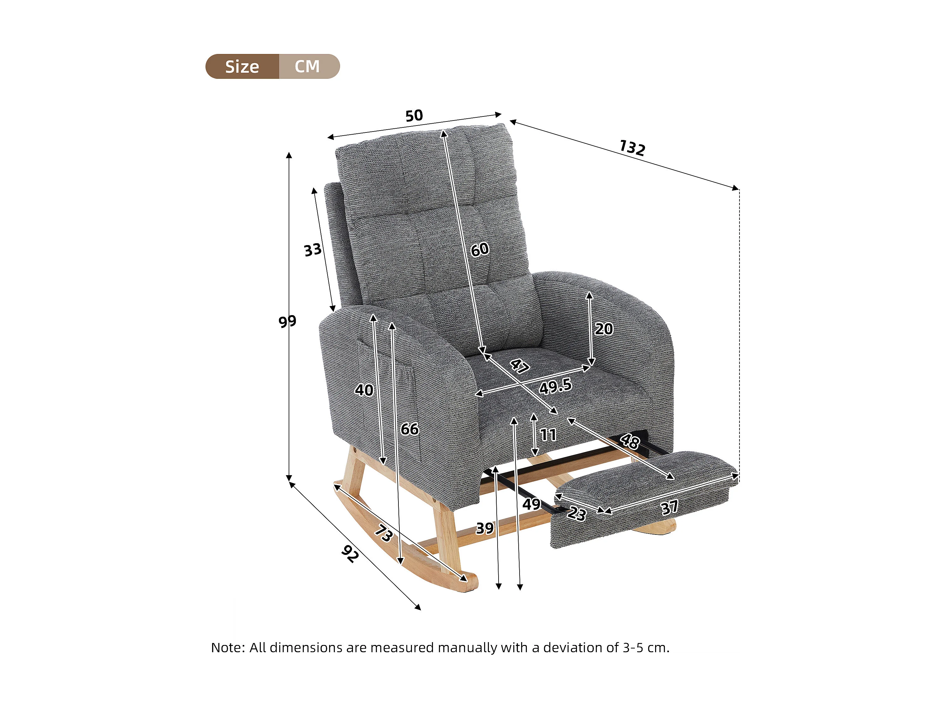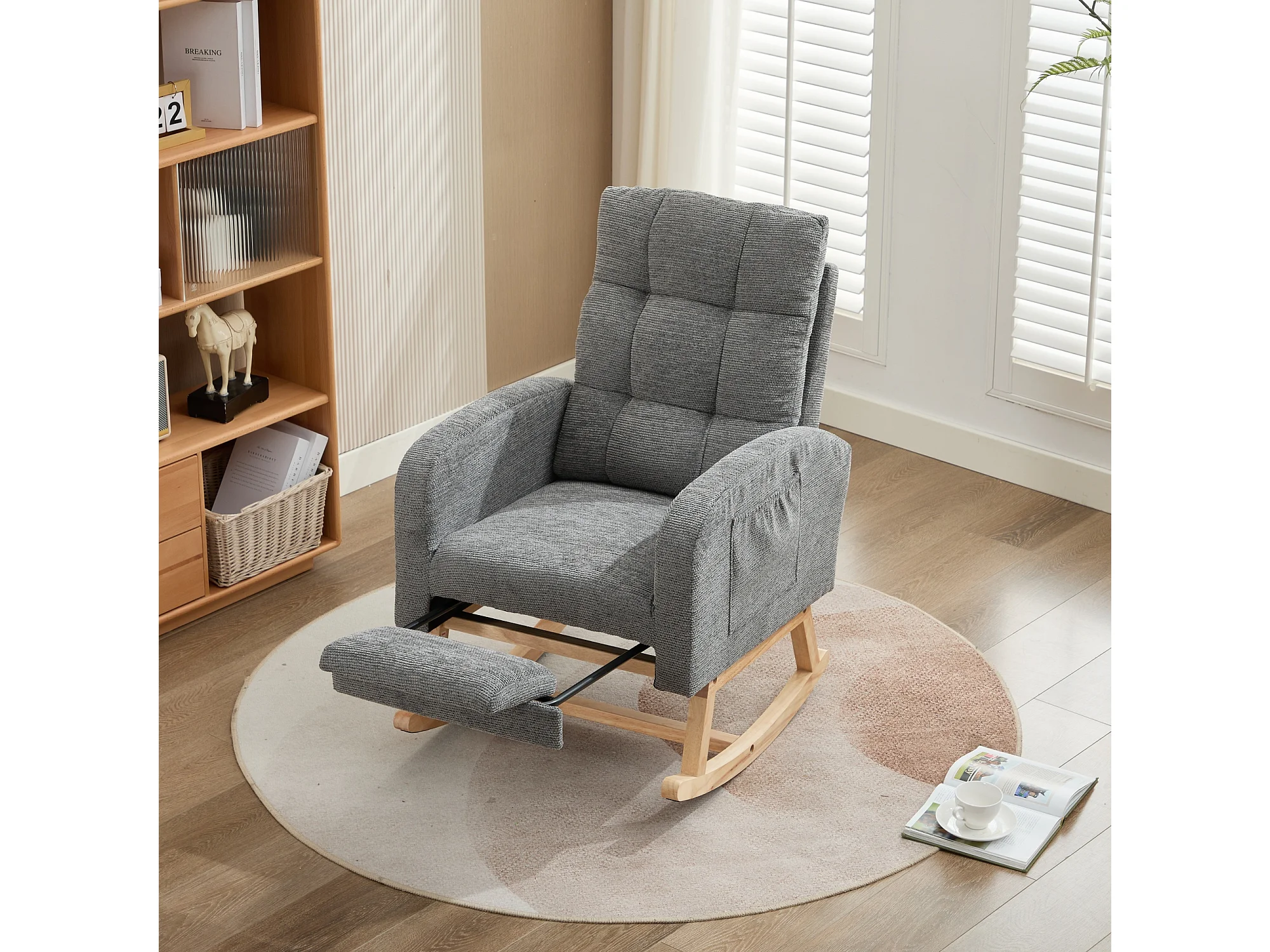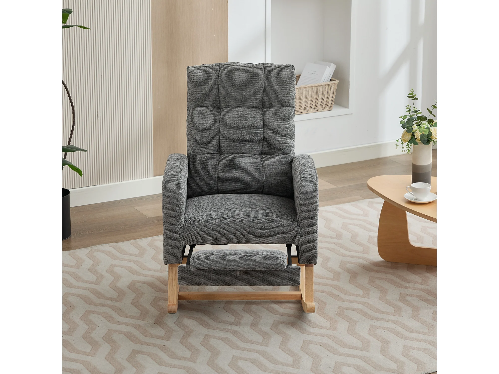 Fotel bujany 132x50x99cm - Konstrukcja z litego drewna - Welur - Szary