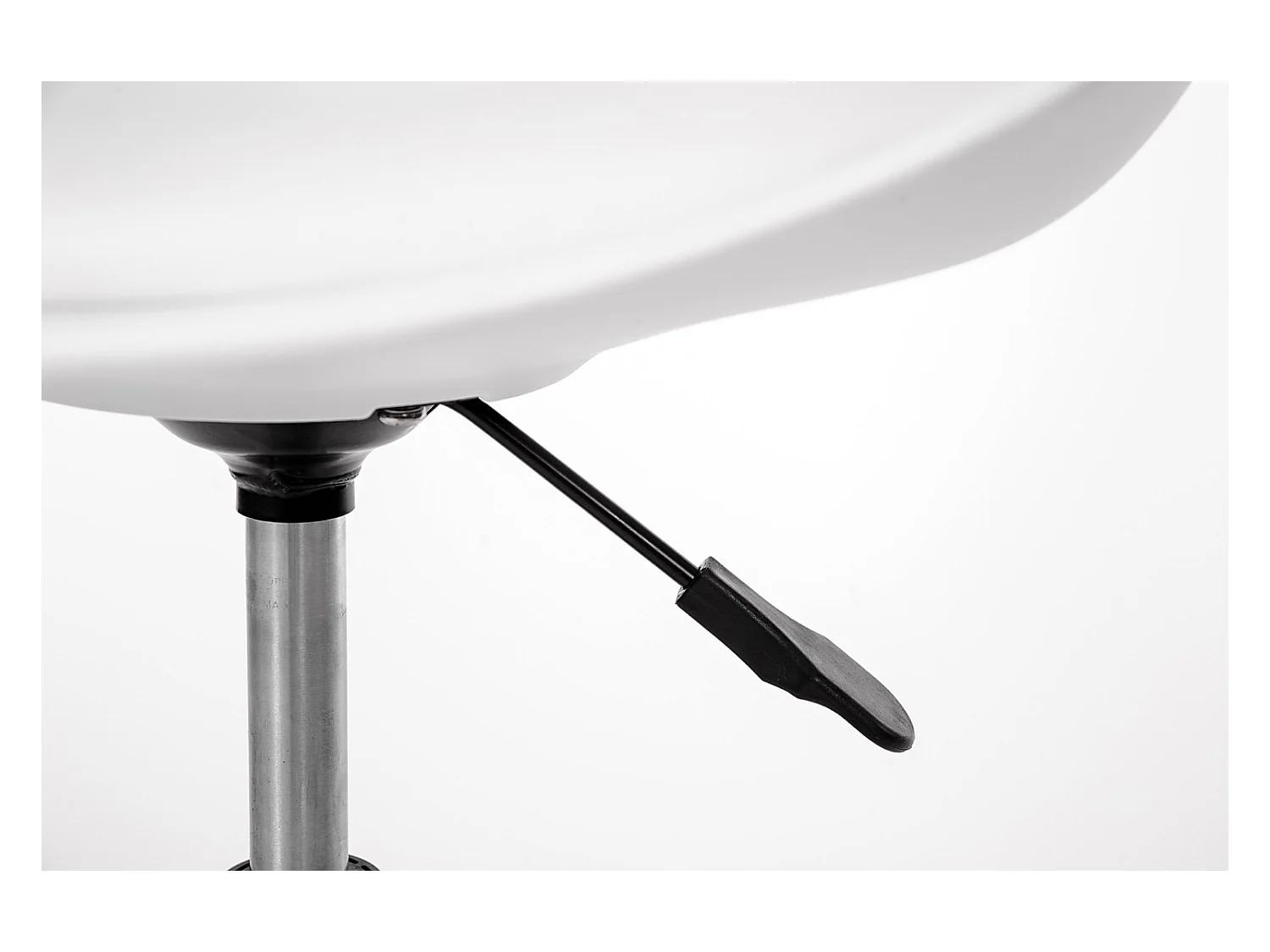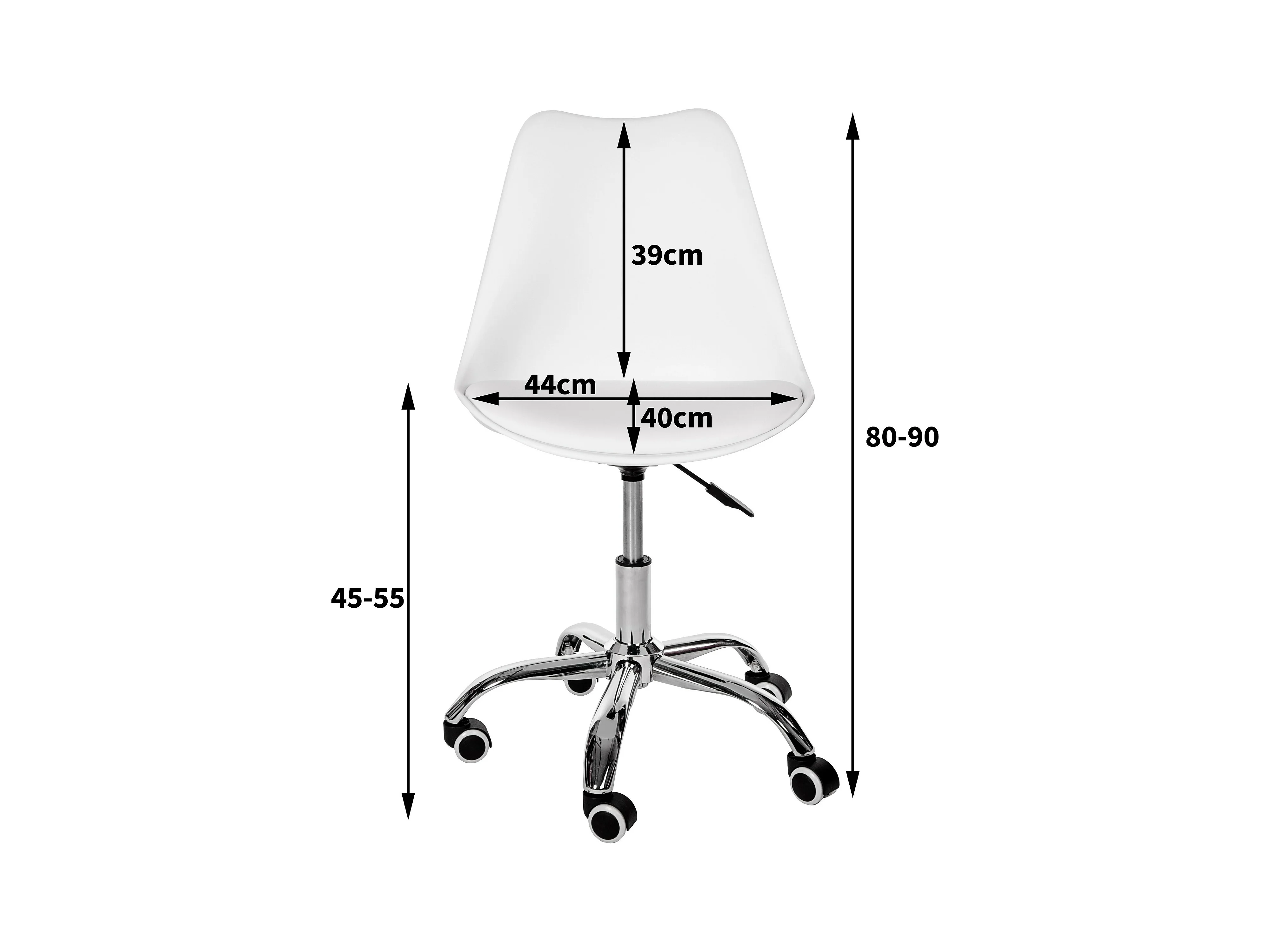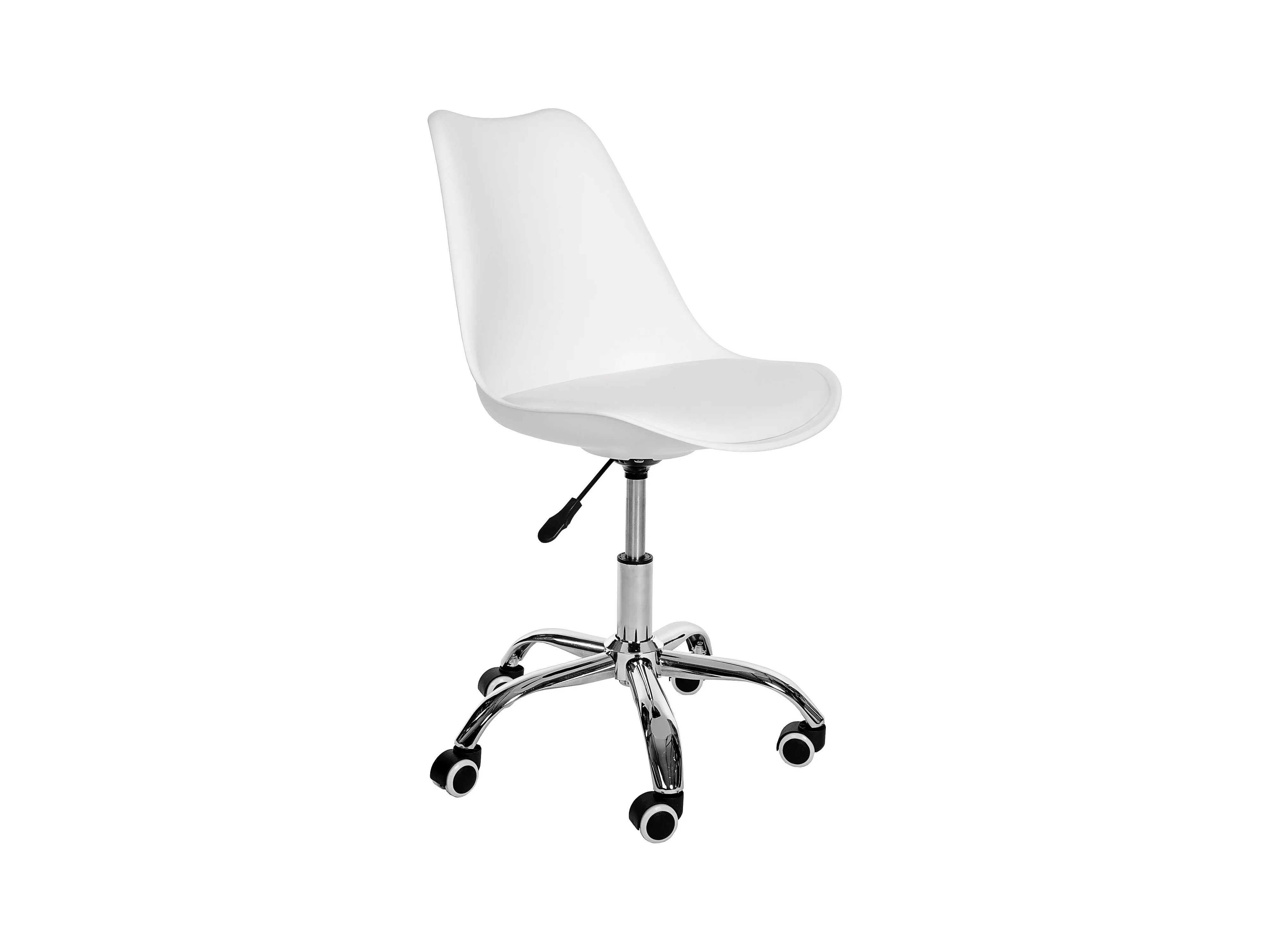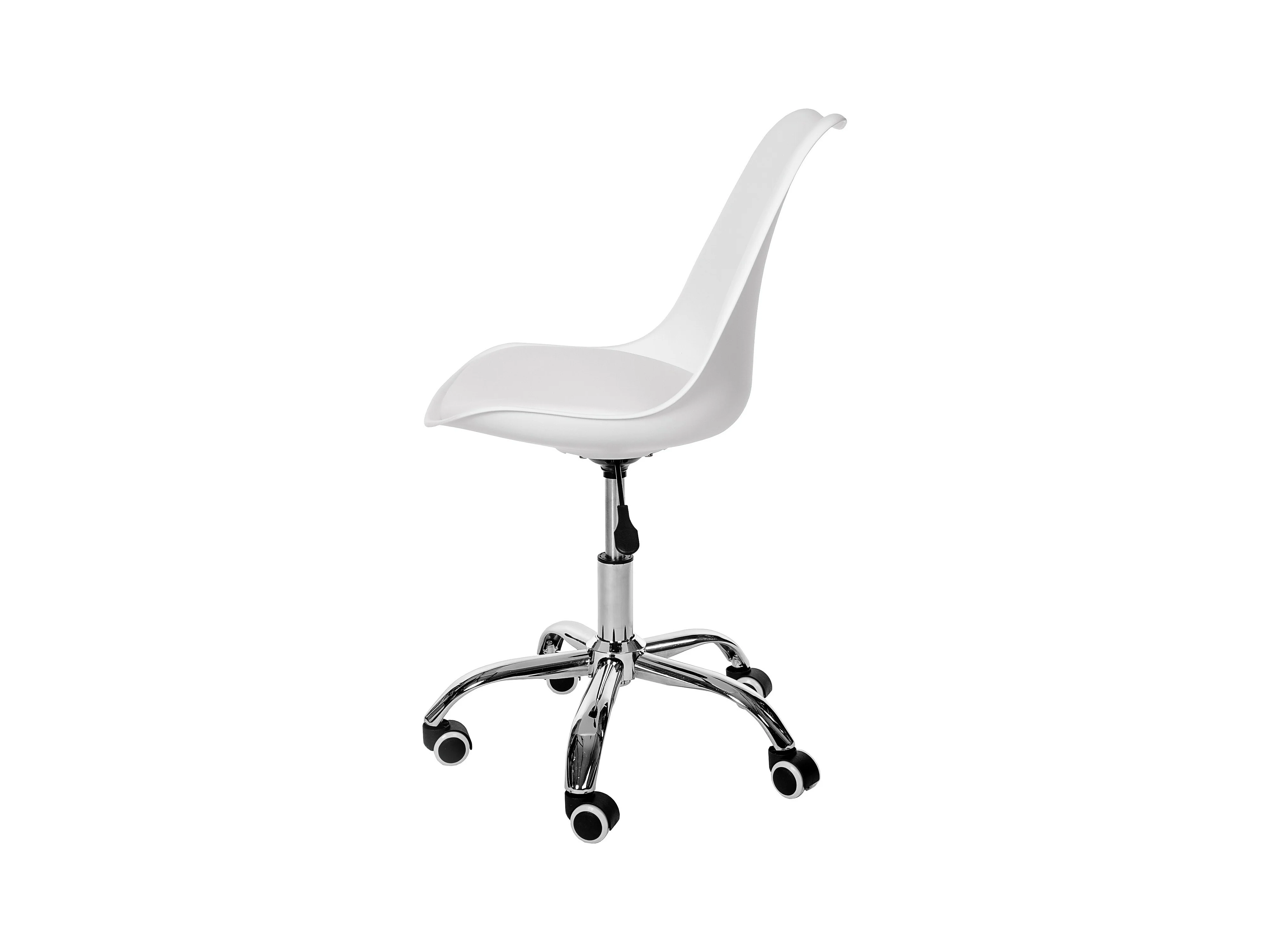 Krzesło biurowe Karen z regulowaną wysokością i fotel obrotowy z pochyleniem w białej skórze ekologicznej.