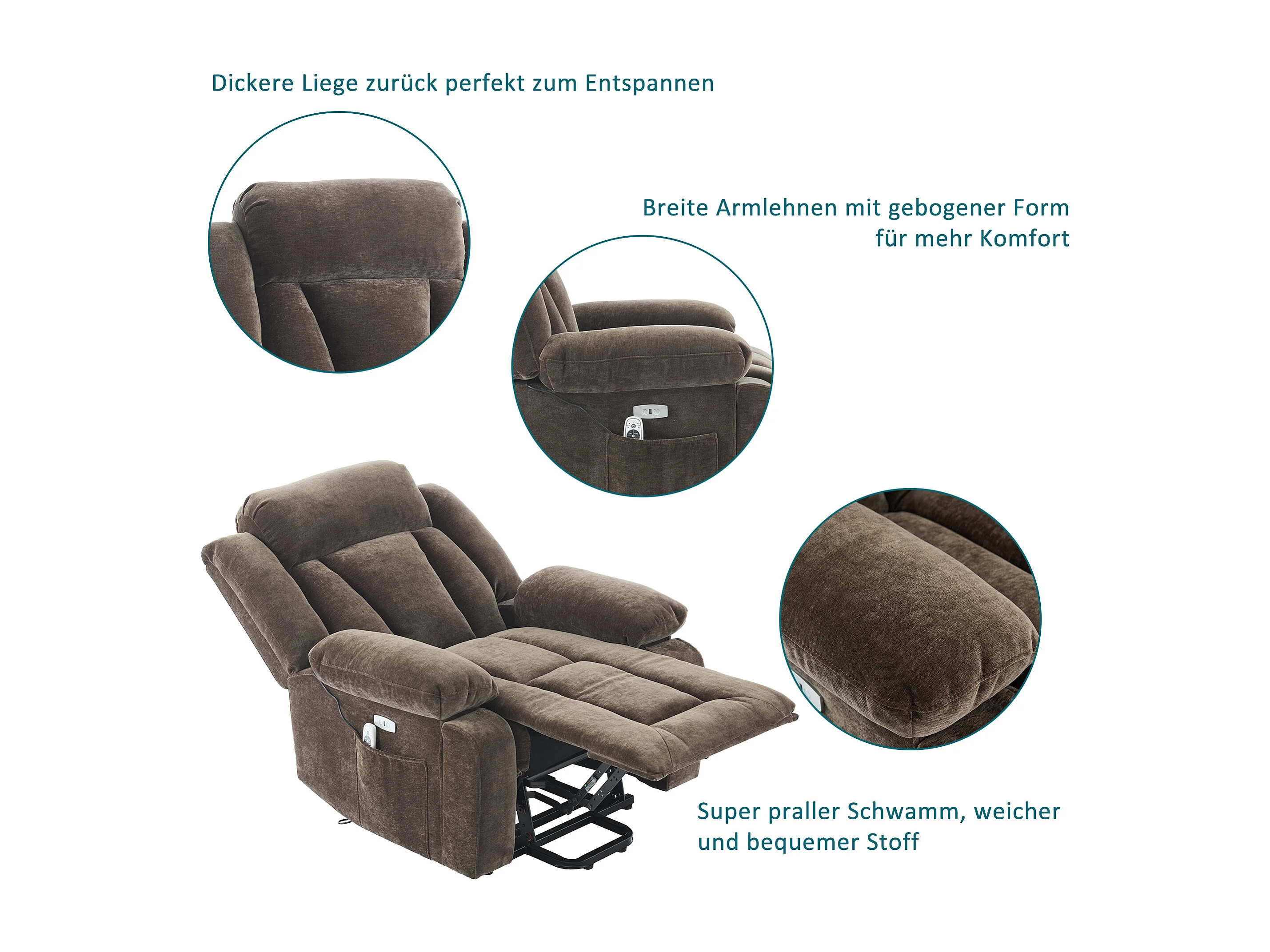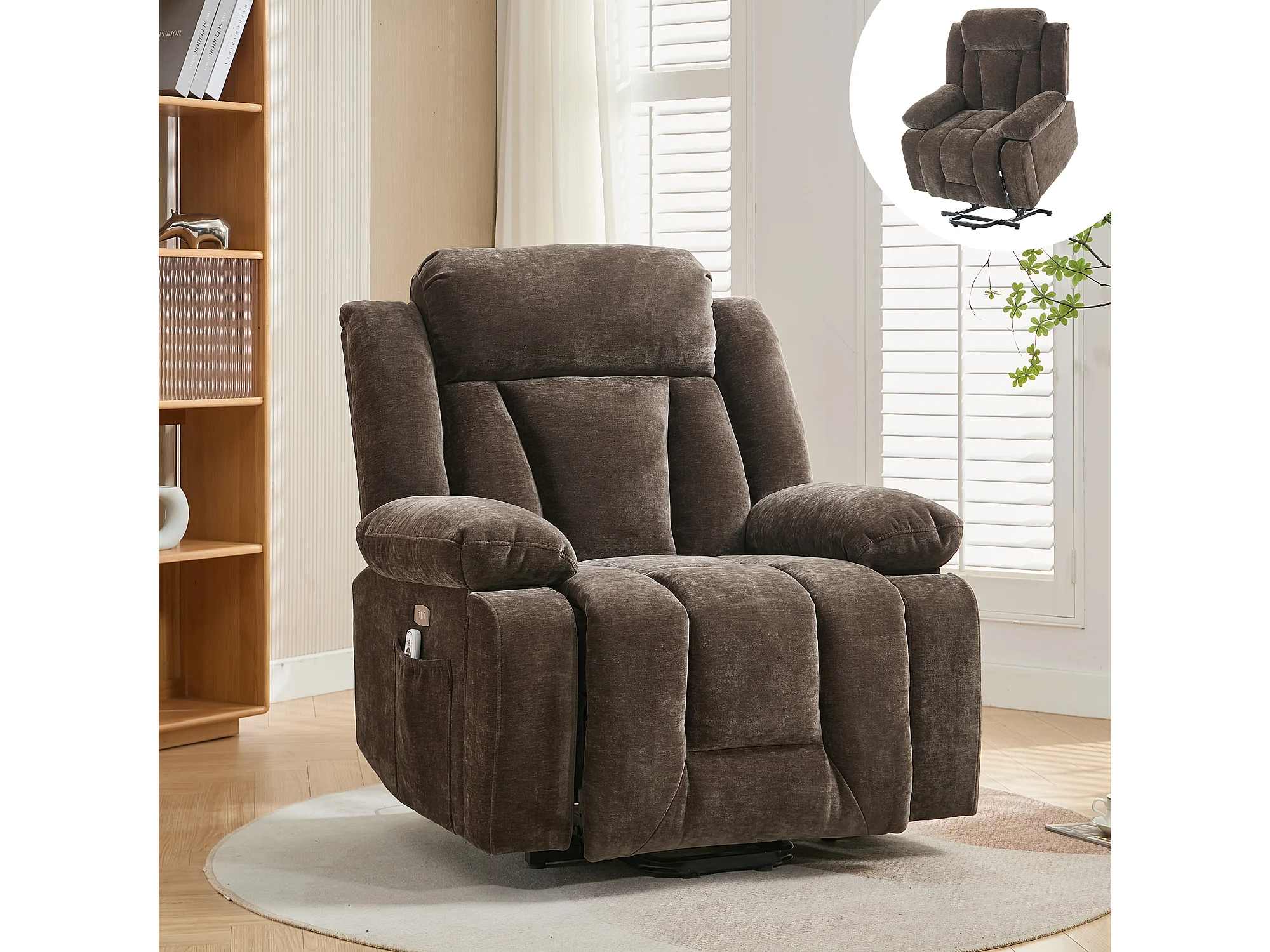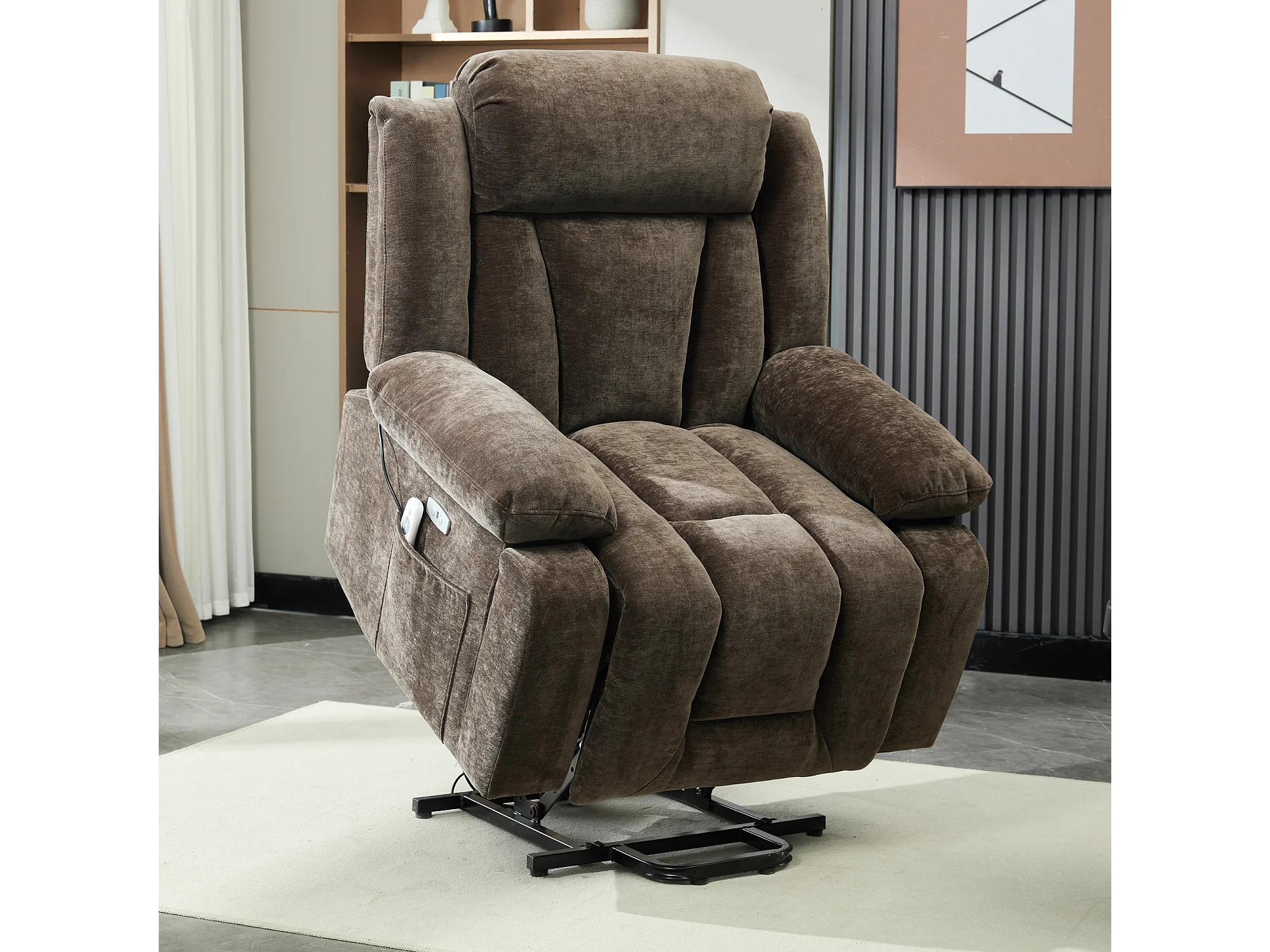 Fotel masujący elektryczny - 95 x 94 x 107 cm - z 8-punktowym masażem + funkcją podgrzewania i podnoszenia - materiałowy - brązowy