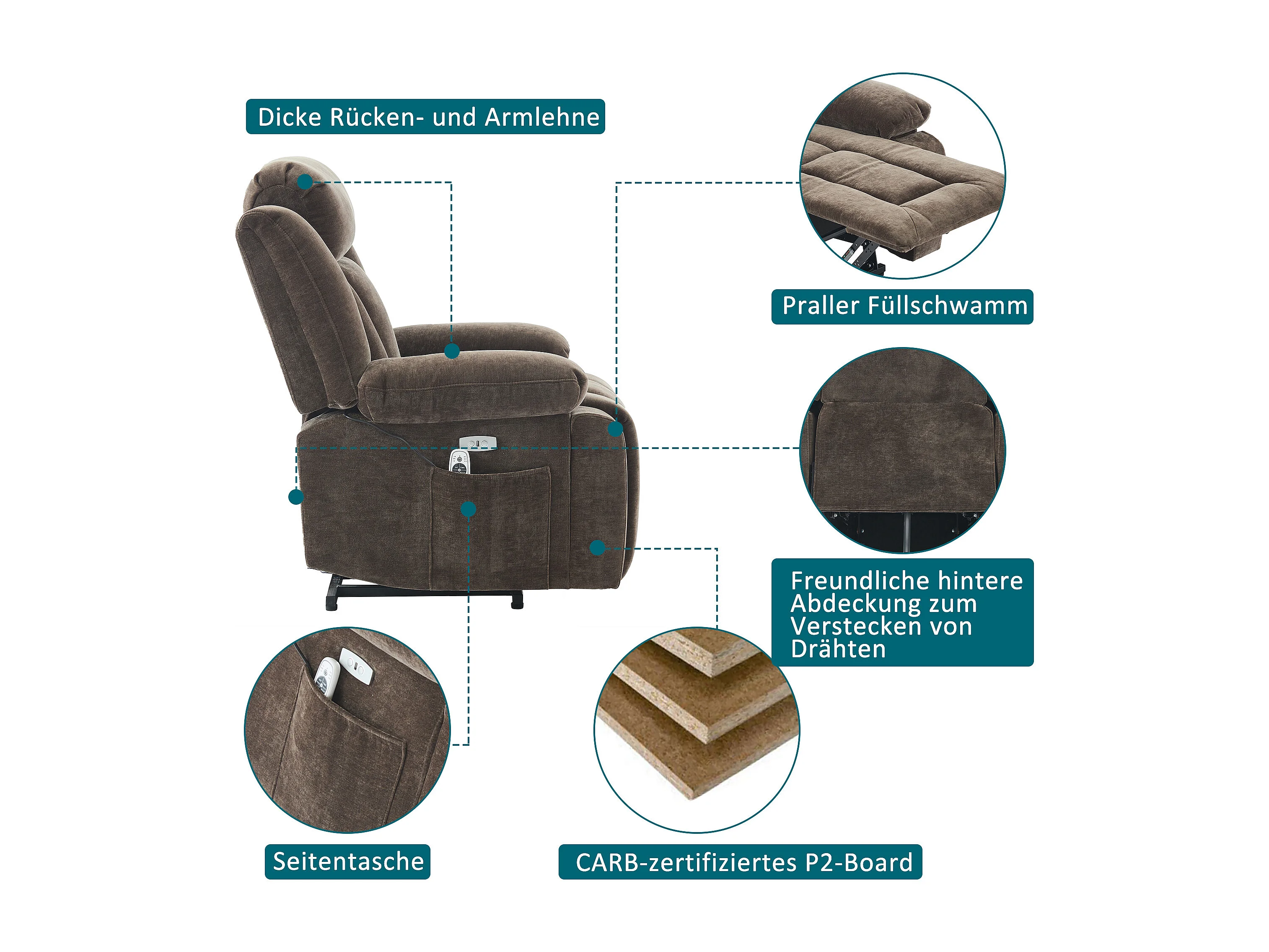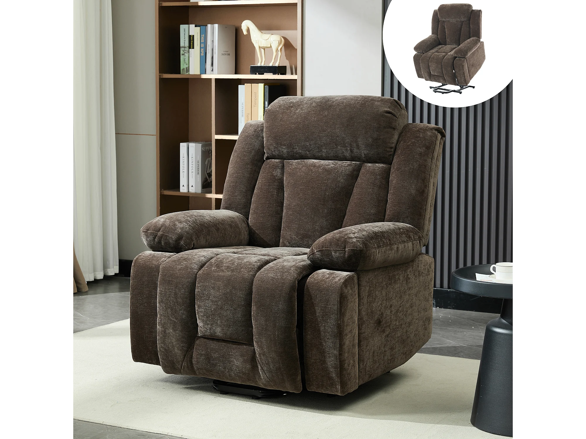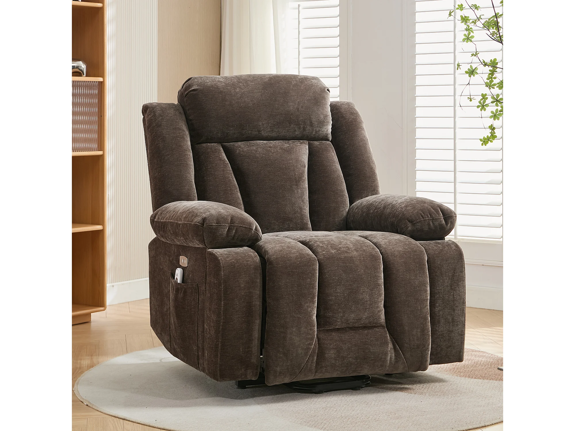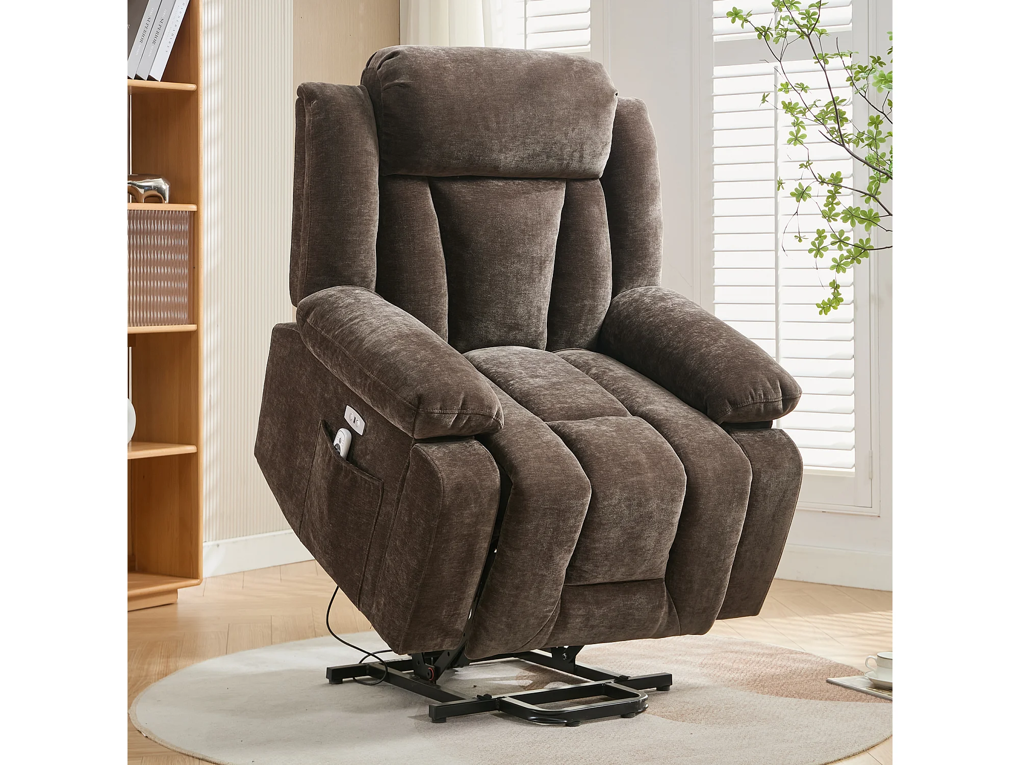 Fotel masujący elektryczny - 95 x 94 x 107 cm - z 8-punktowym masażem + funkcją podgrzewania i podnoszenia - materiałowy - brązowy