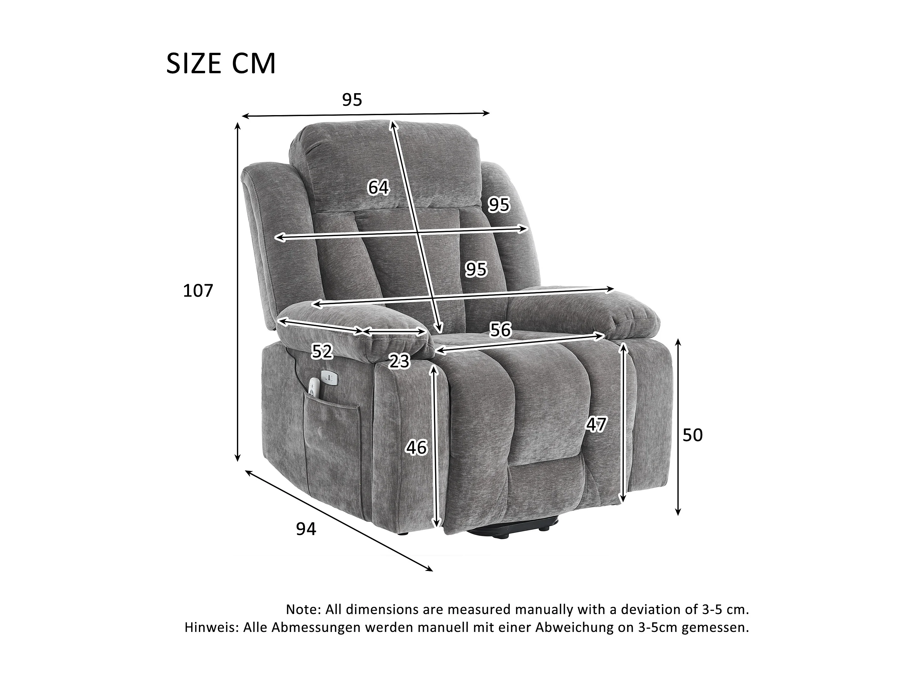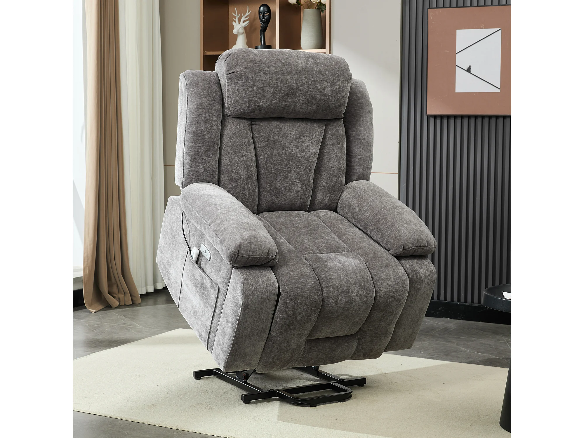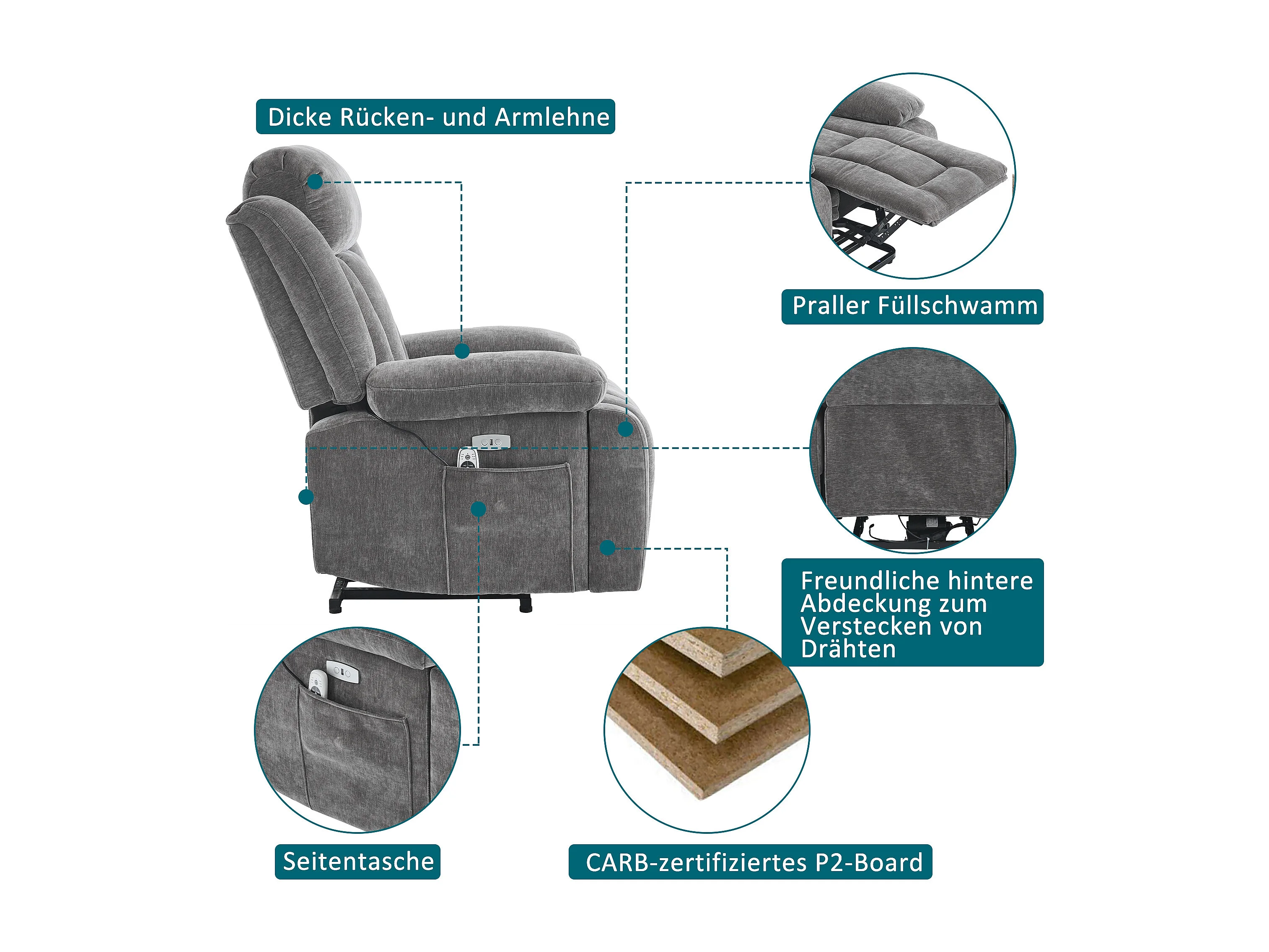 Fotel masujący elektryczny - 95 x 94 x 107 cm - z 8-punktowym masażem + funkcją podgrzewania i podnoszenia - materiałowy - szary