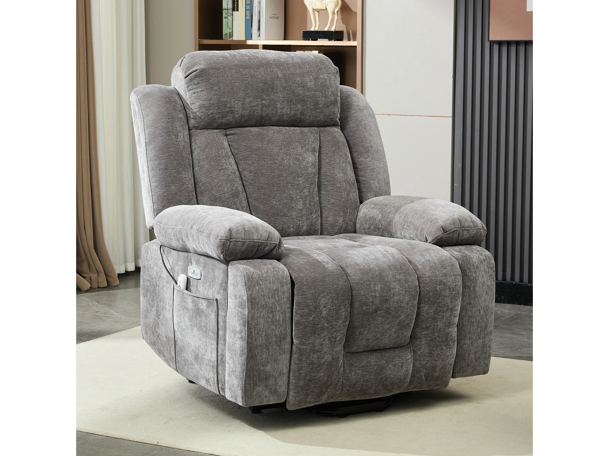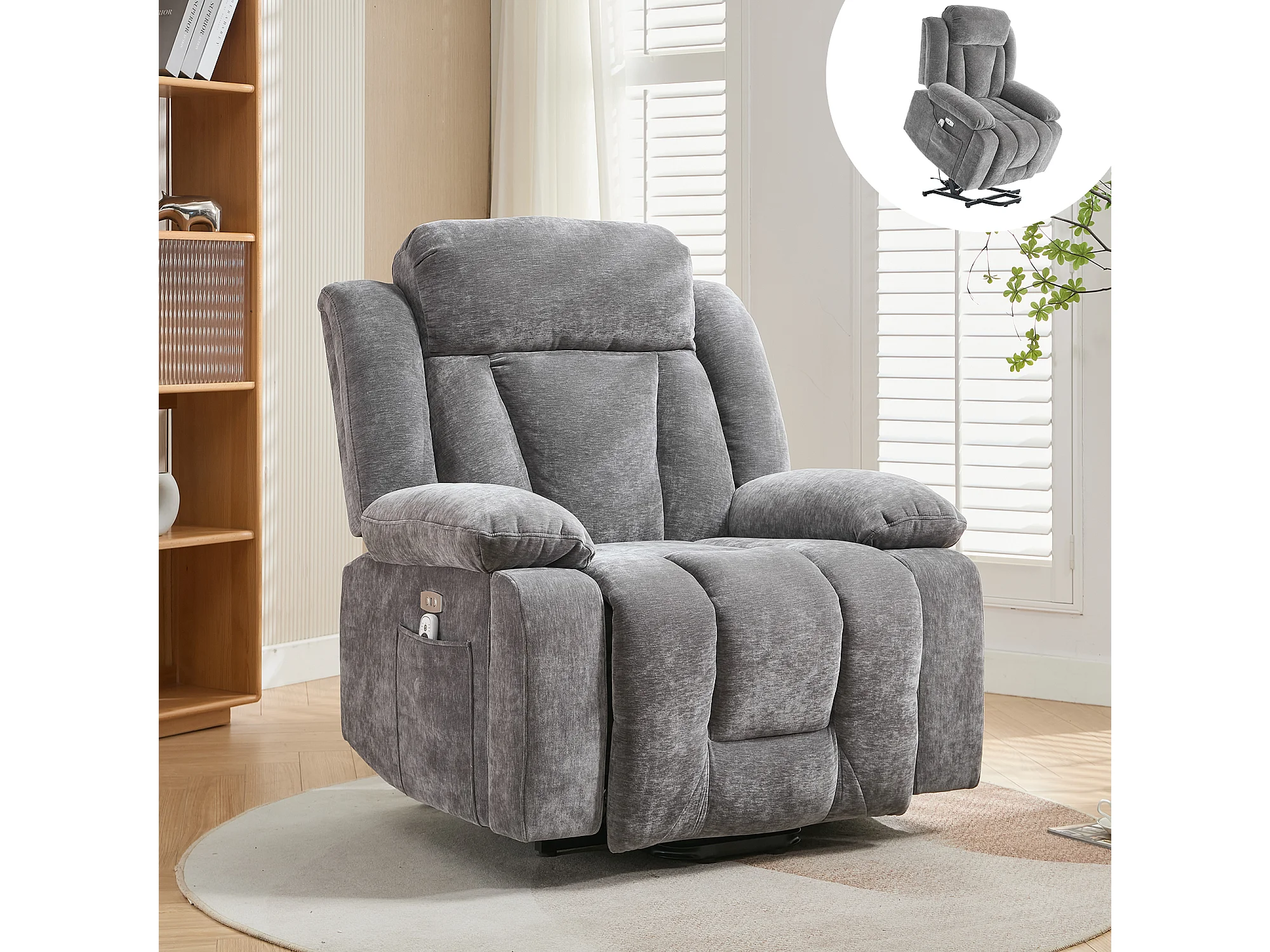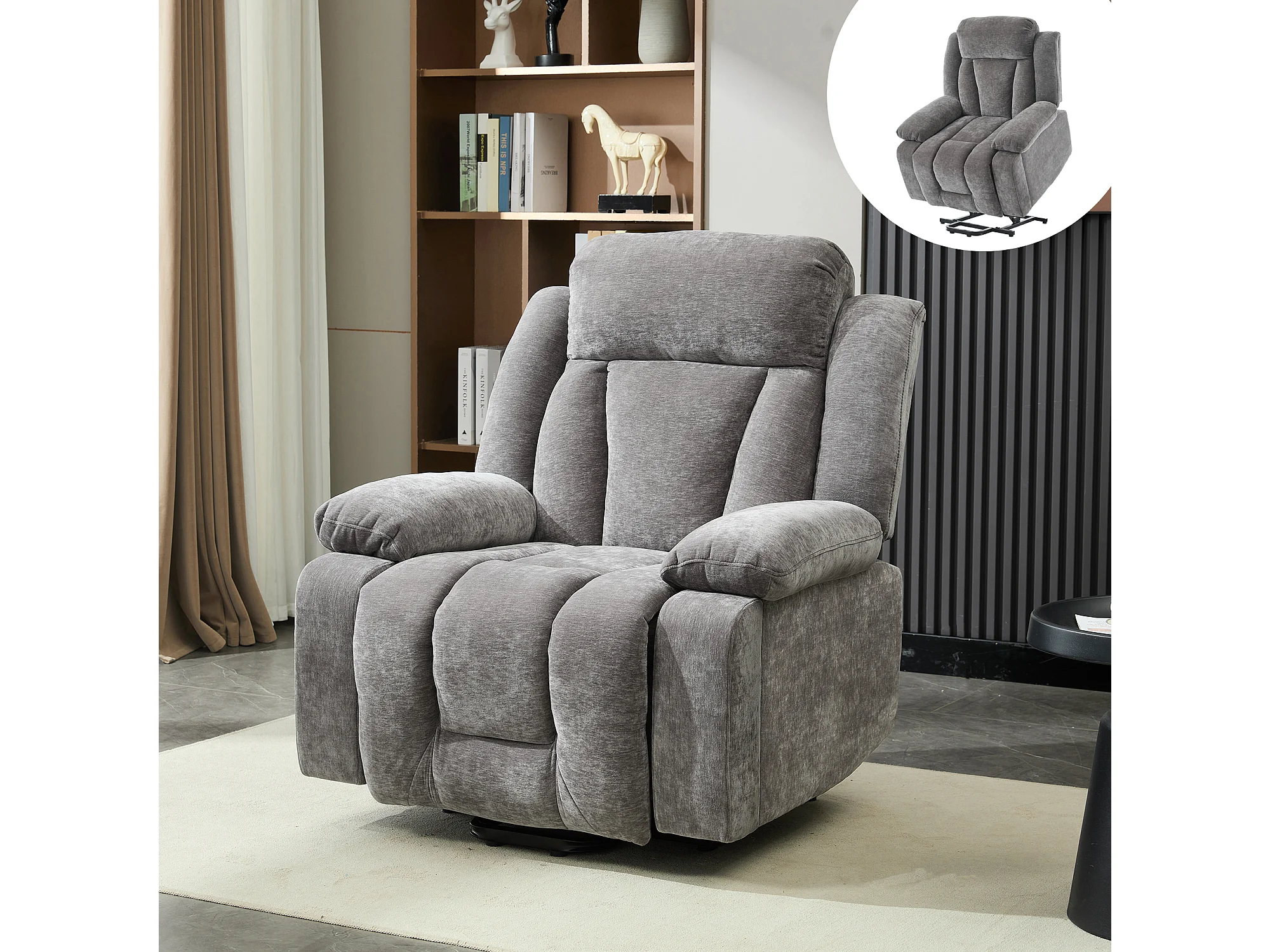 Fotel masujący elektryczny - 95 x 94 x 107 cm - z 8-punktowym masażem + funkcją podgrzewania i podnoszenia - materiałowy - szary