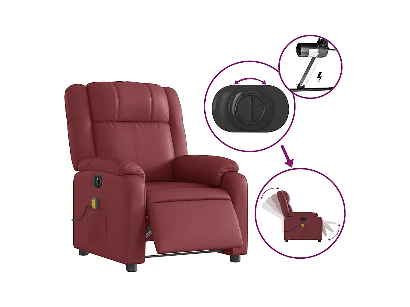 Fotel masujący z Regulacją Pozycji Bordowy z Ekoskóry z Funkcją Wibracji i Ręczną Regulacją