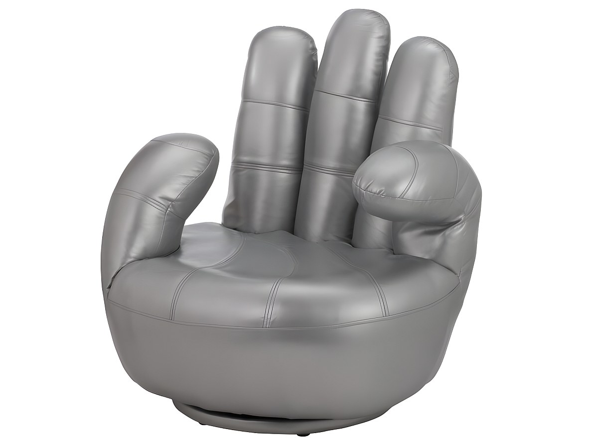 Fotel obrotowy w kształcie dłoni CATCHY z materiału skóropodobnego - Srebrny