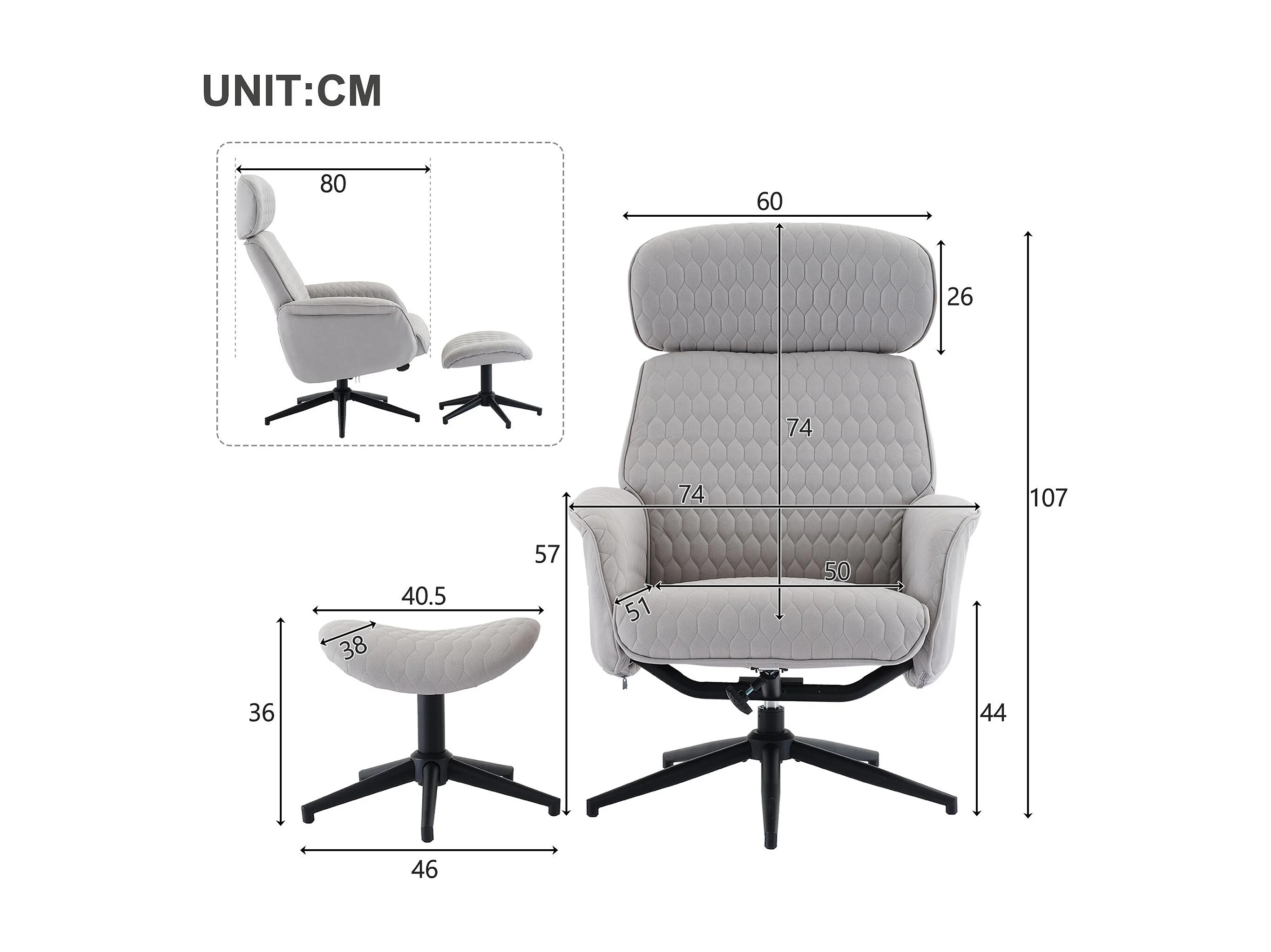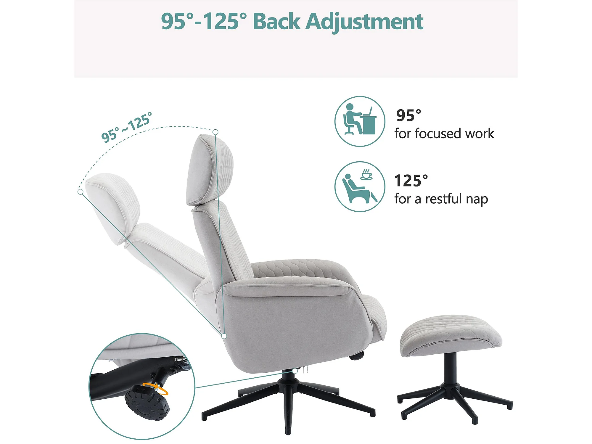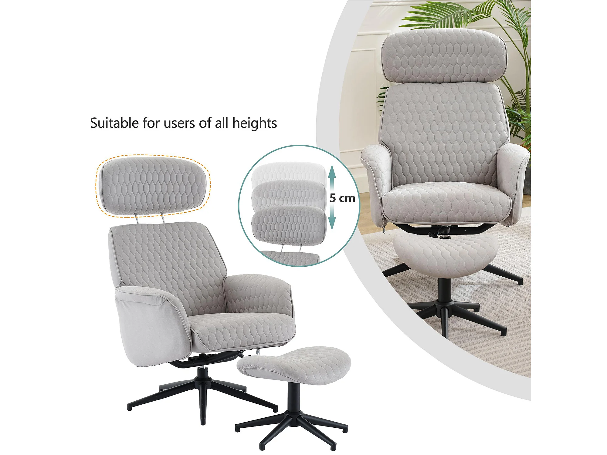 Fotel obrotowy z weluru z podnóżkiem i regulowanym oparciem - nachylny od 95° do 125° - Szary