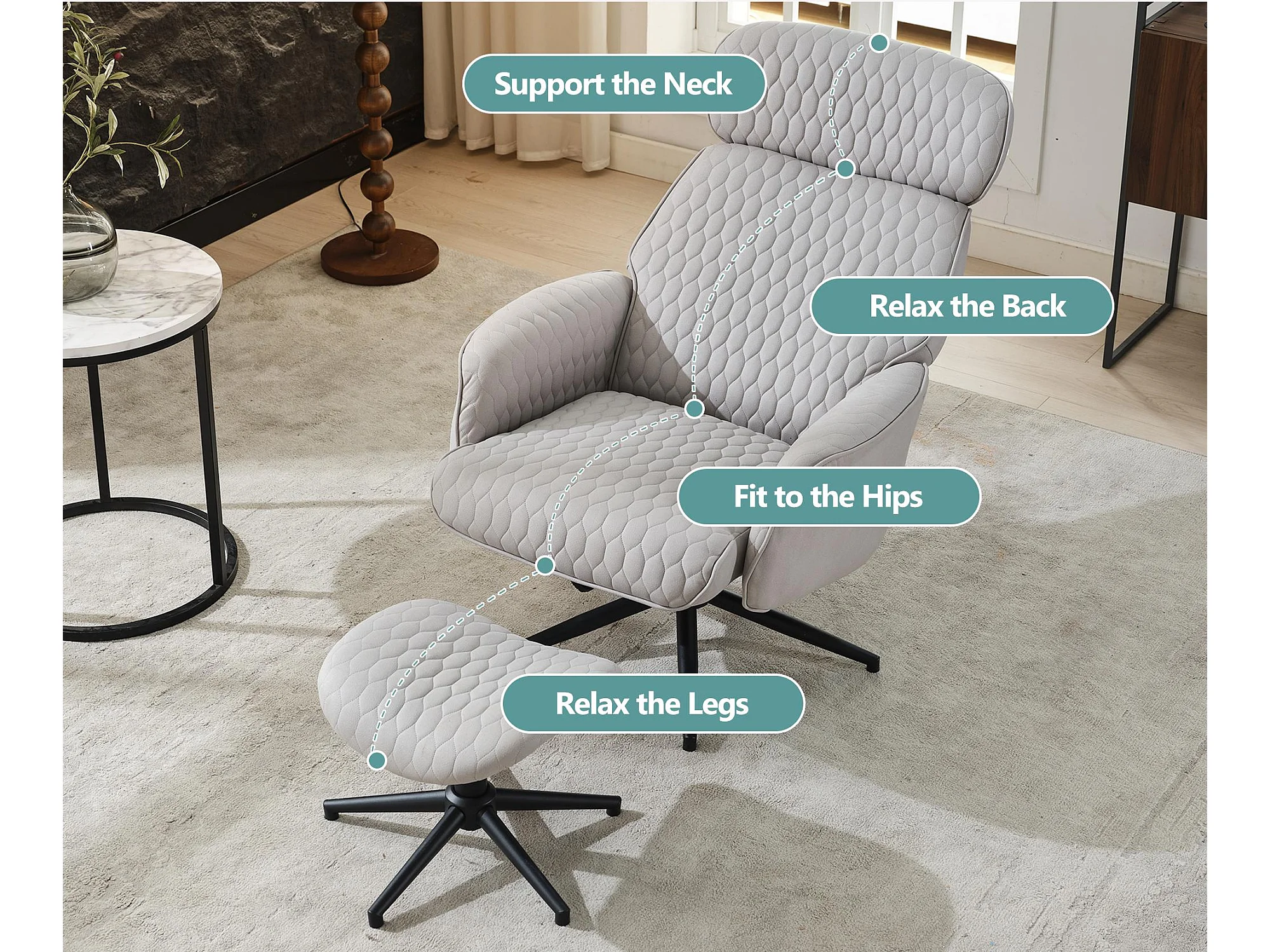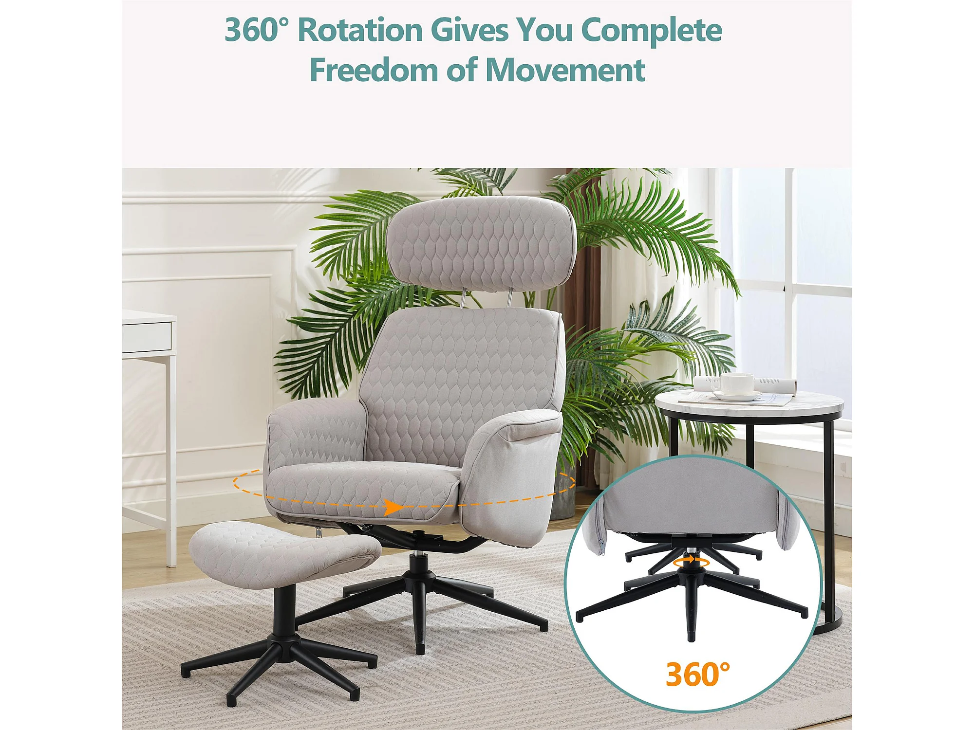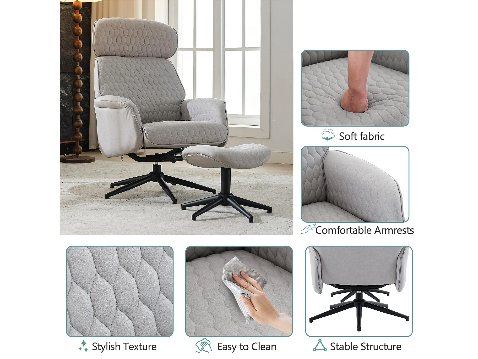 Fotel obrotowy z weluru z podnóżkiem i regulowanym oparciem - nachylny od 95° do 125° - Szary