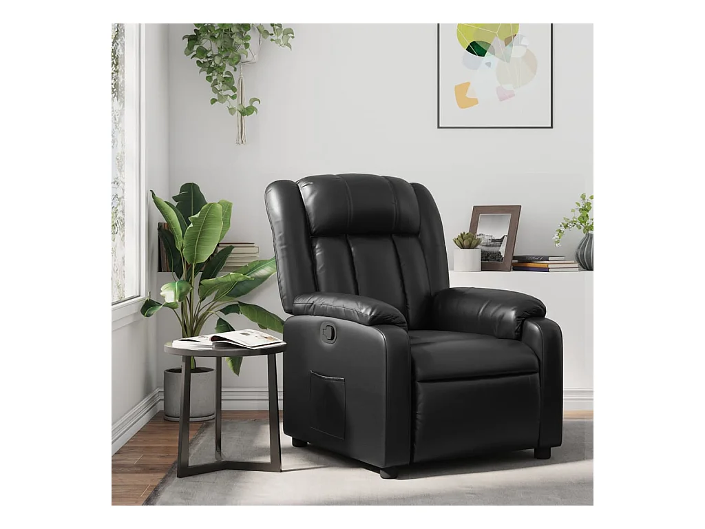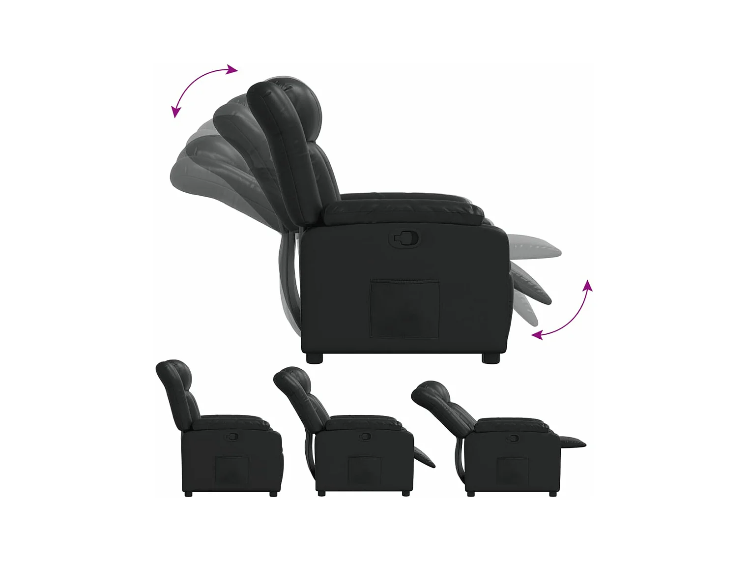 Fotel Rekreacyjny Czarny Ze Skóry Ekologicznej z Funkcją Ręcznej Regulacji Nachylenia i Boczną Kieszenią