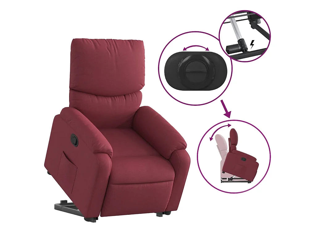 Fotel relaksacyjny bordo z funkcją elektrycznego podnoszenia i ręczną regulacją