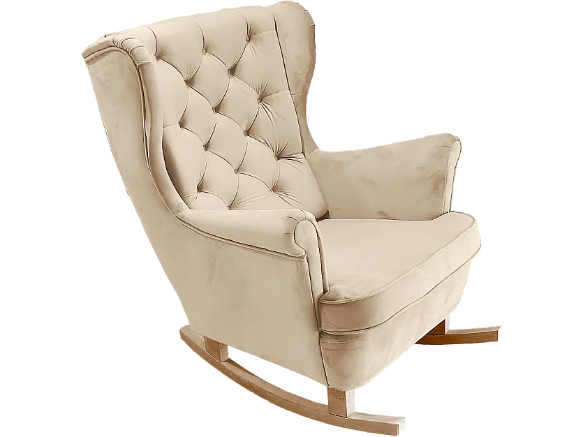 Fotel bujany - Wyściełane oparcie - Drewniane nogi - Beżowy