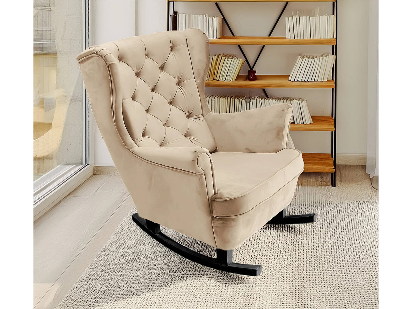 Fotel bujany, fotel relaksacyjny z podłokietnikami, tkanina lniana, beżowy