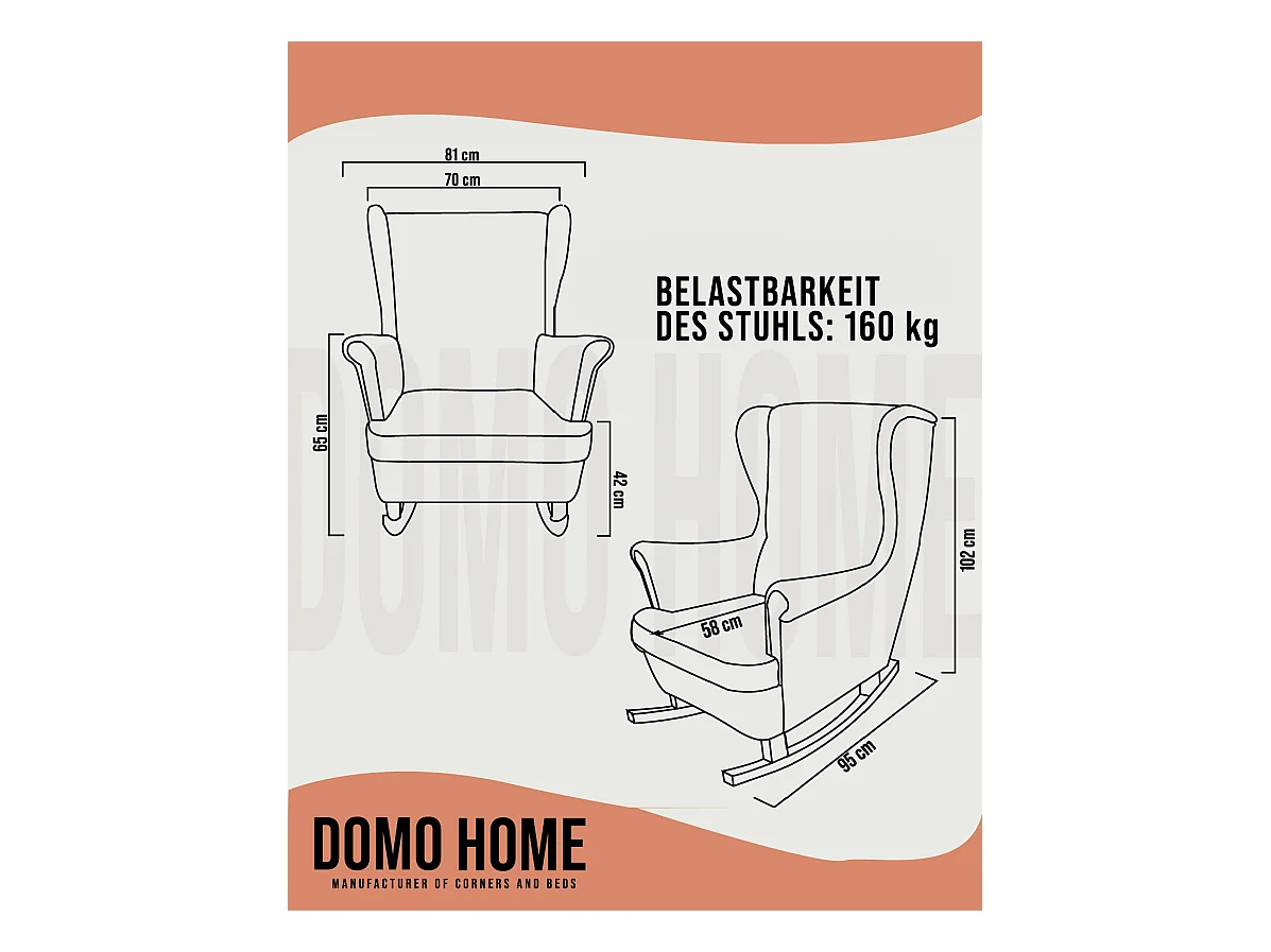 Nowoczesny fotel bujany, jasnoszary plusz, fotel bujany z podłokietnikami i oparciem, odpowiedni do salonu i sypialni